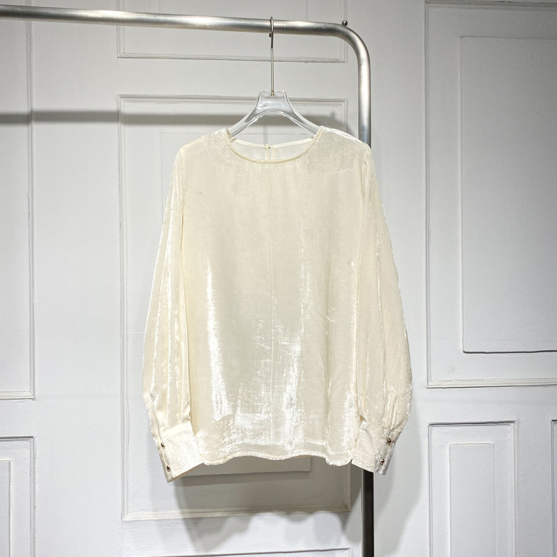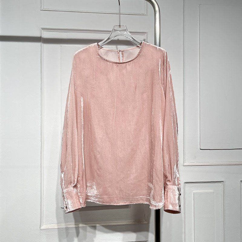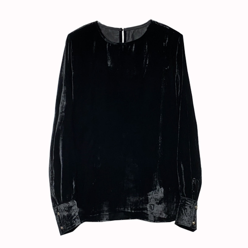 宽松时尚套头长袖真丝丝绒衬衫潮