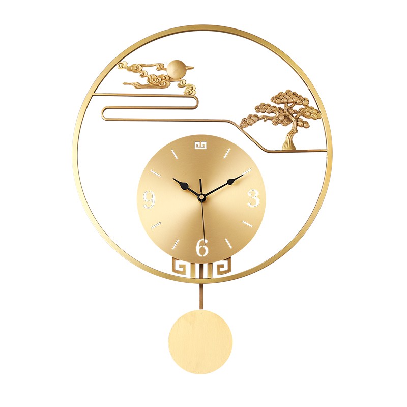 新中式纯铜挂钟福鹿轻奢钟表静音客厅装饰圆形石英高档大气挂表