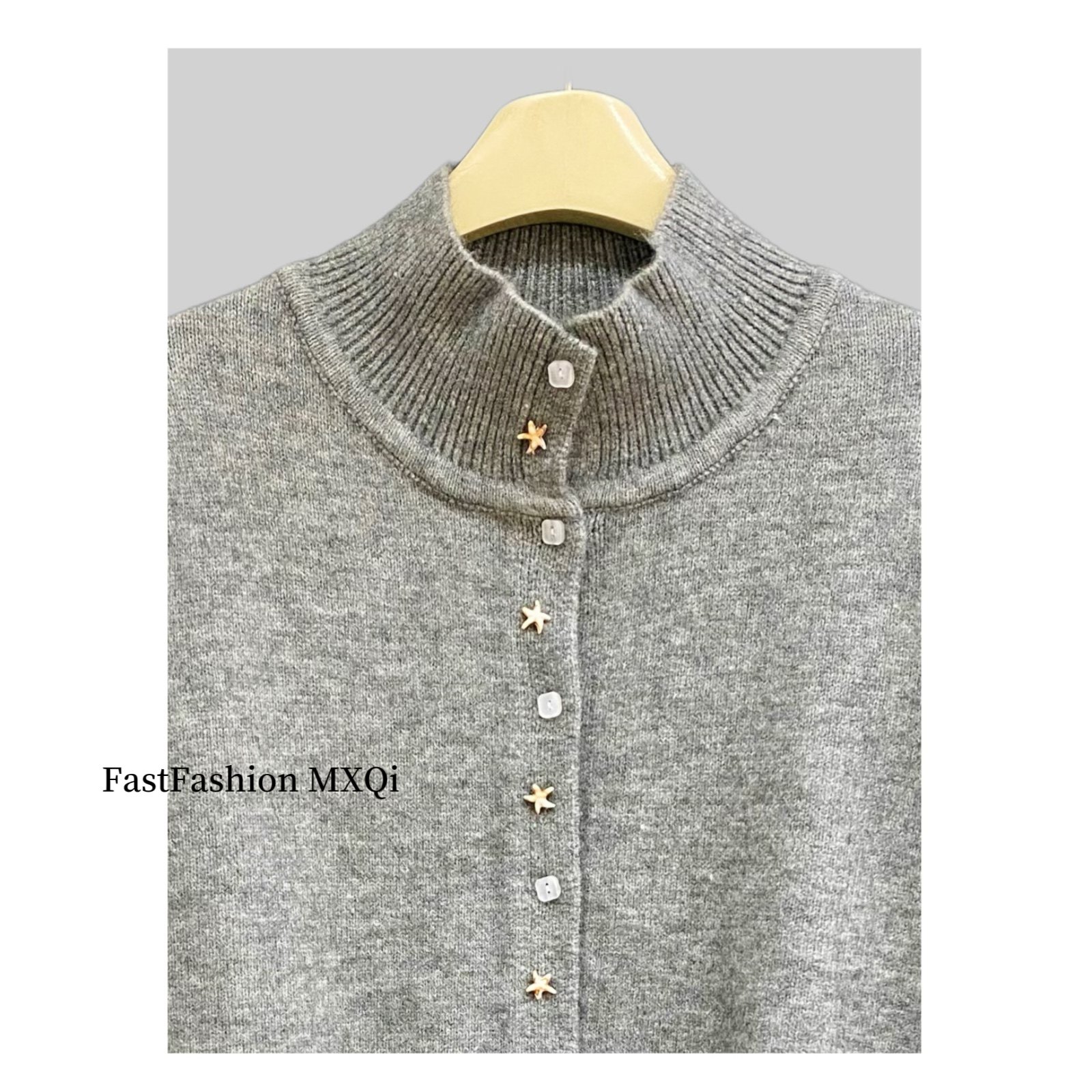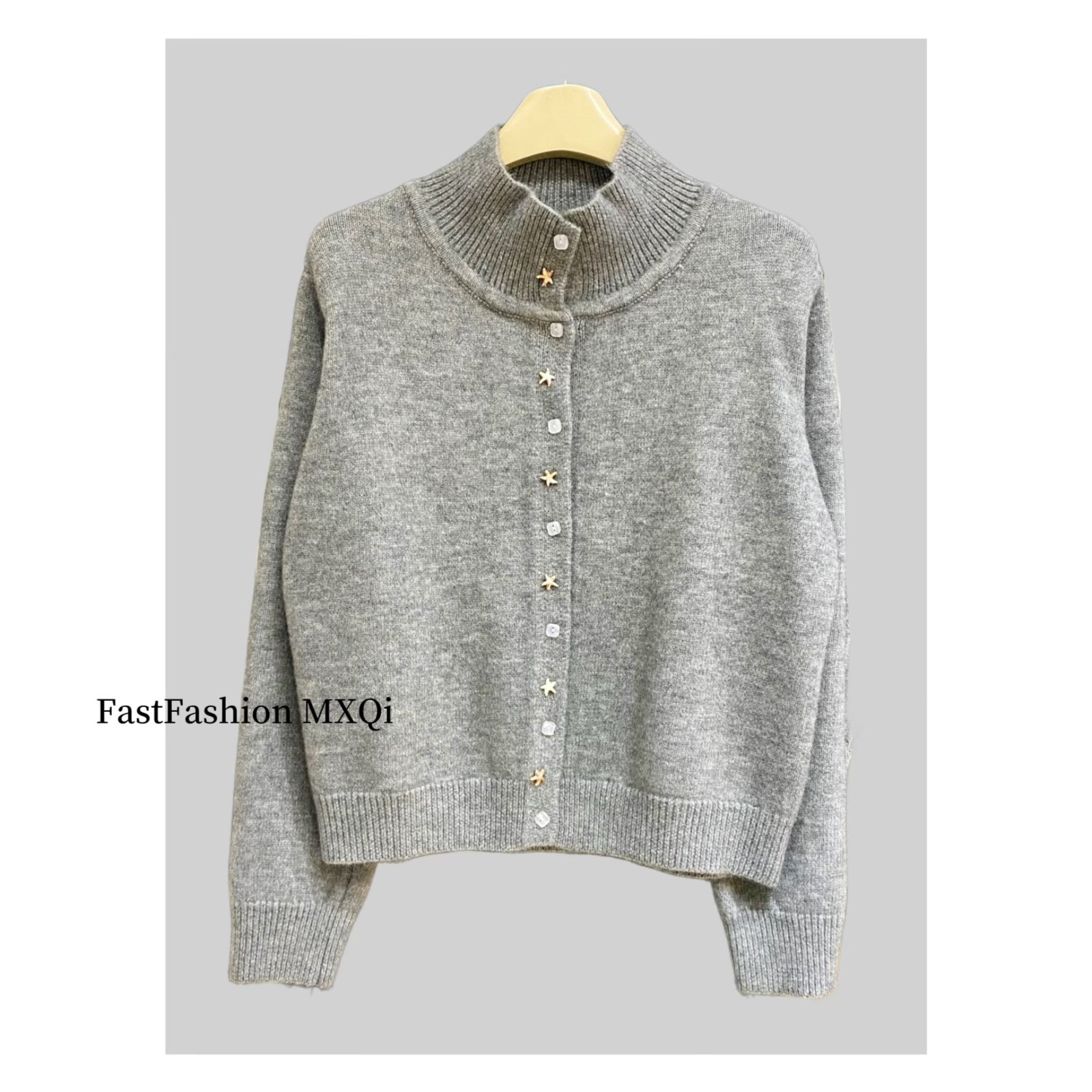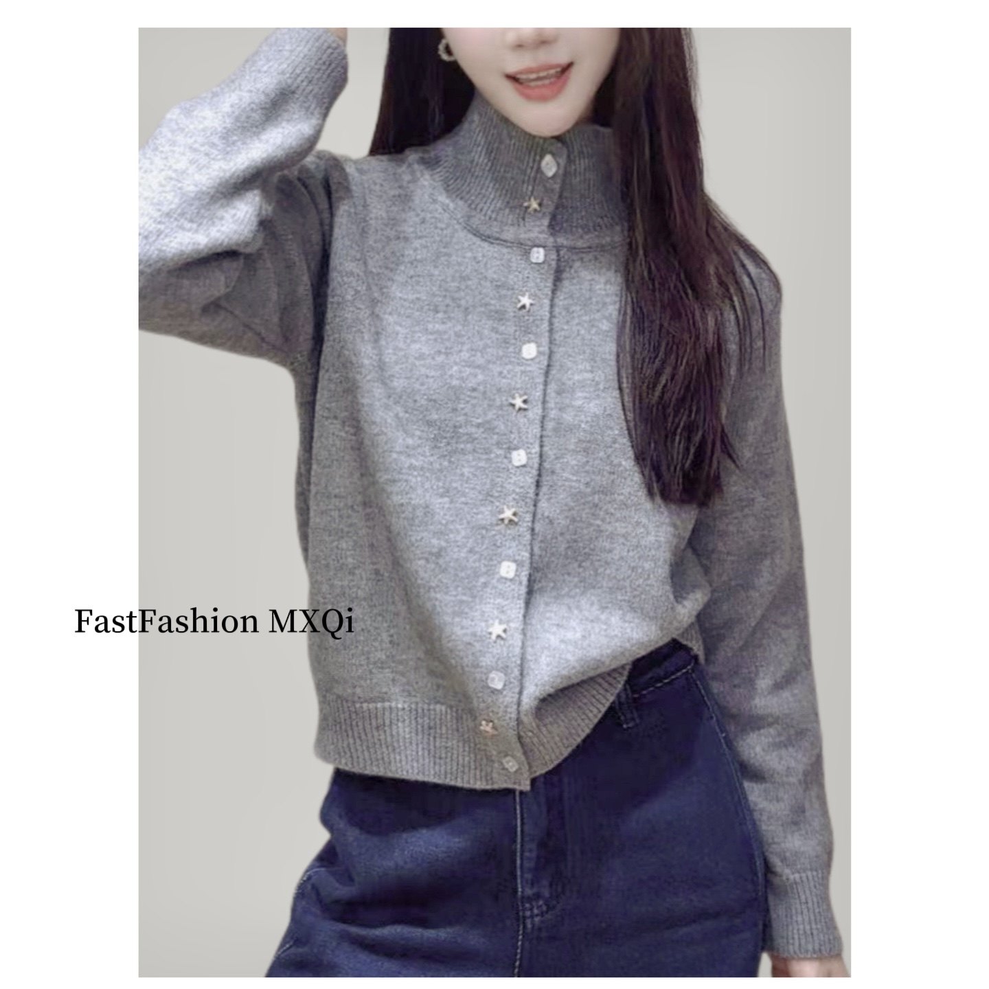 2025新款韩版显瘦灰色高领针织开衫女百搭洋气时尚立领毛衣外套厚