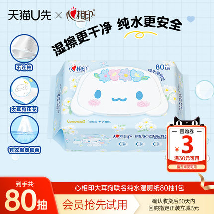 【U先试用】心相印三丽鸥大耳狗湿厕纸洁厕湿巾私处擦屁屁80抽1包