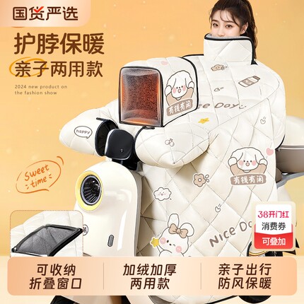 电动车挡风被冬季加绒加厚亲子儿童款防寒保暖电车防水防风罩新款