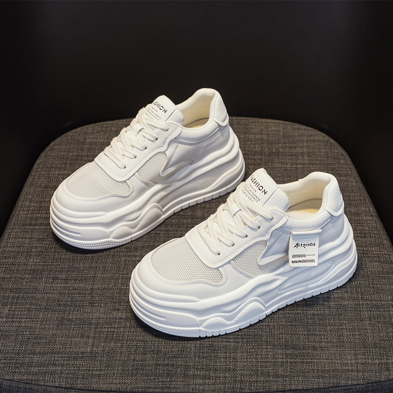 2025春季新款内增高女鞋7CM松糕底小个子运动鞋系带小白鞋女厚底