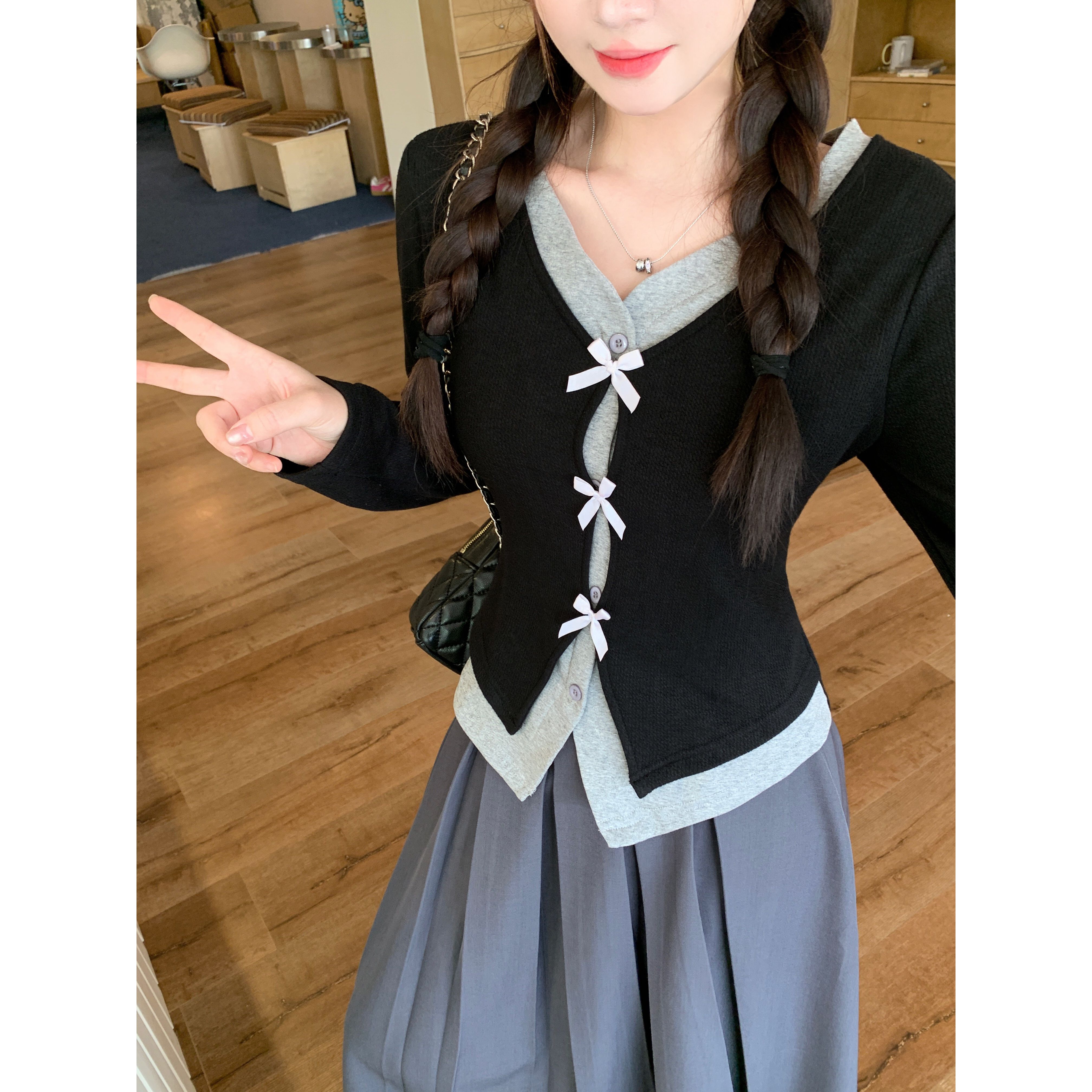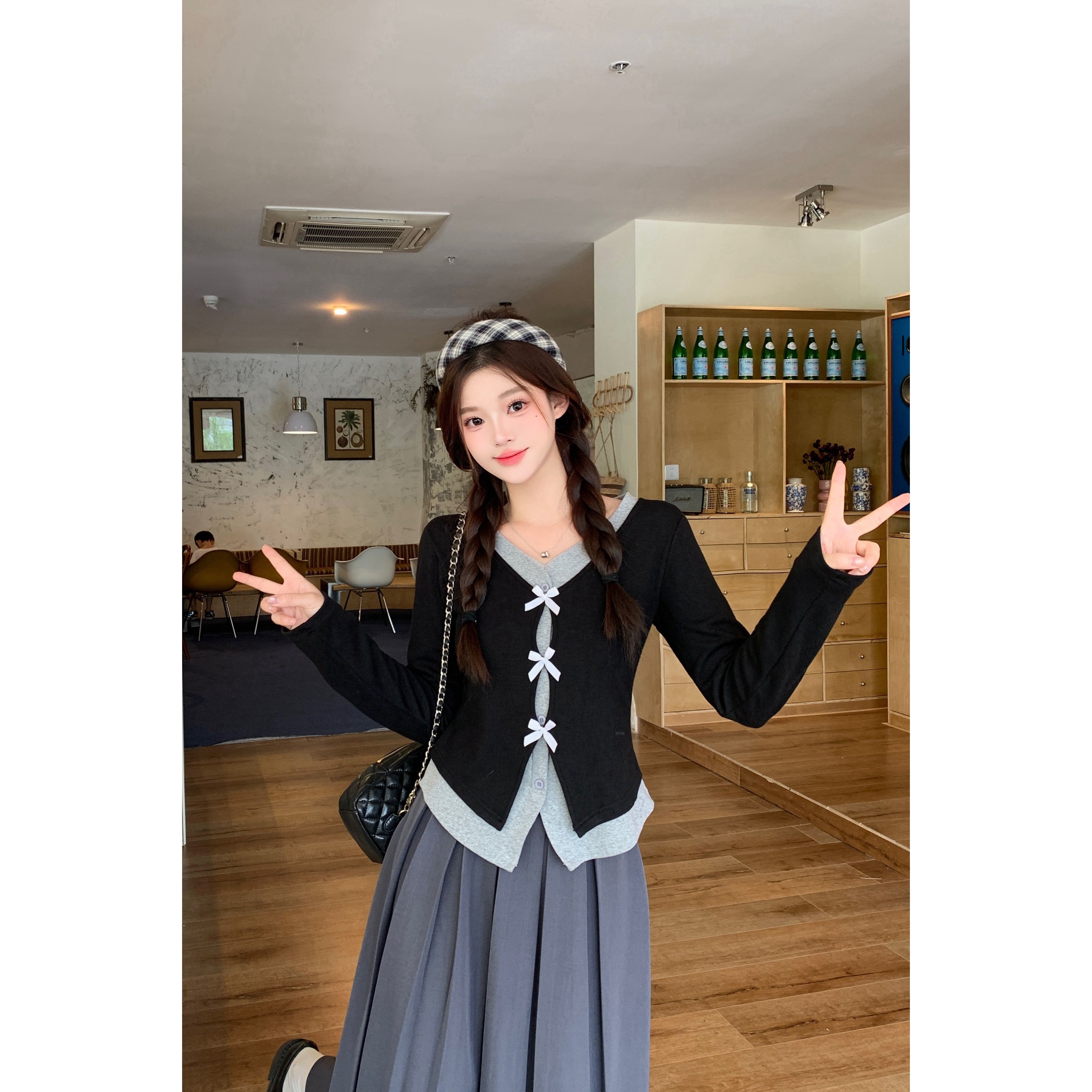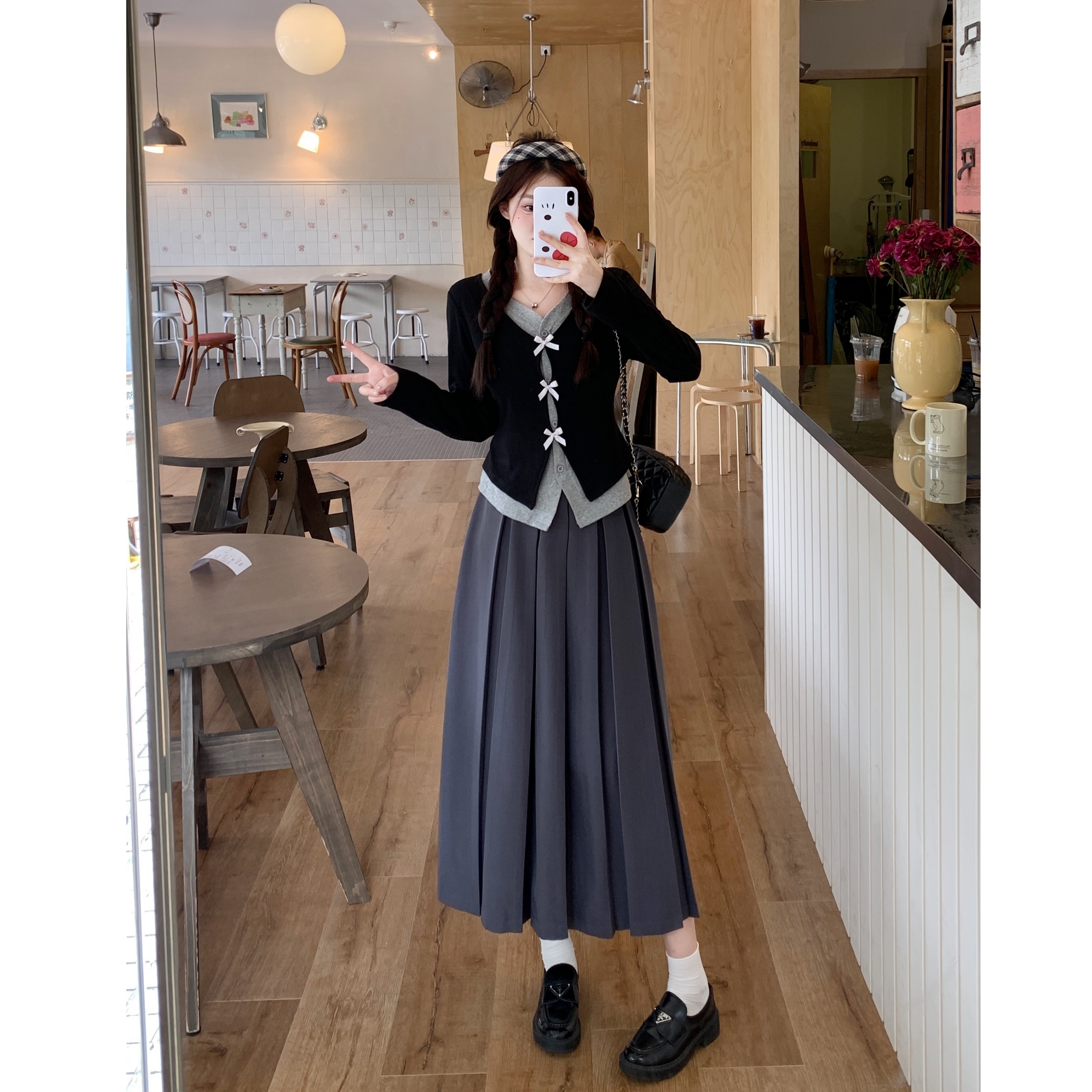 大码胖mm秋季新款休闲假两件针织上衣高腰显瘦半身裙时尚套装女
