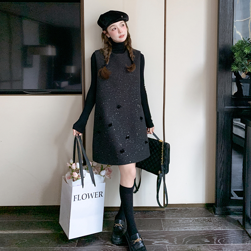 冬季洋气时尚套装中长款法式针织打底衫上衣长袖休闲显瘦外穿