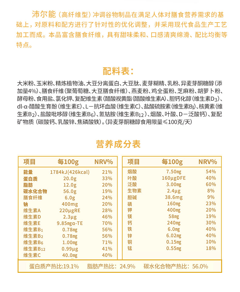 邦世迪沛尔能 沛可匀浆膳 高纤维型 即食谷物方便食品 营养粉