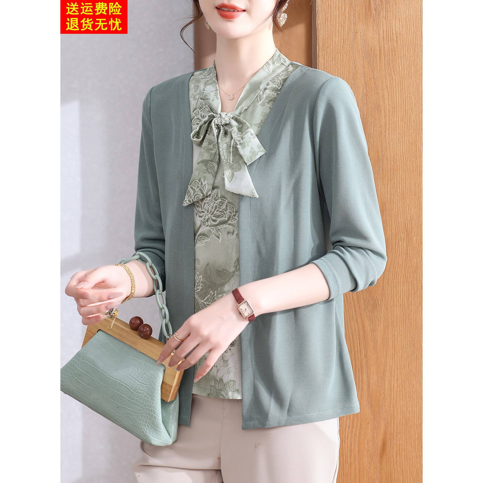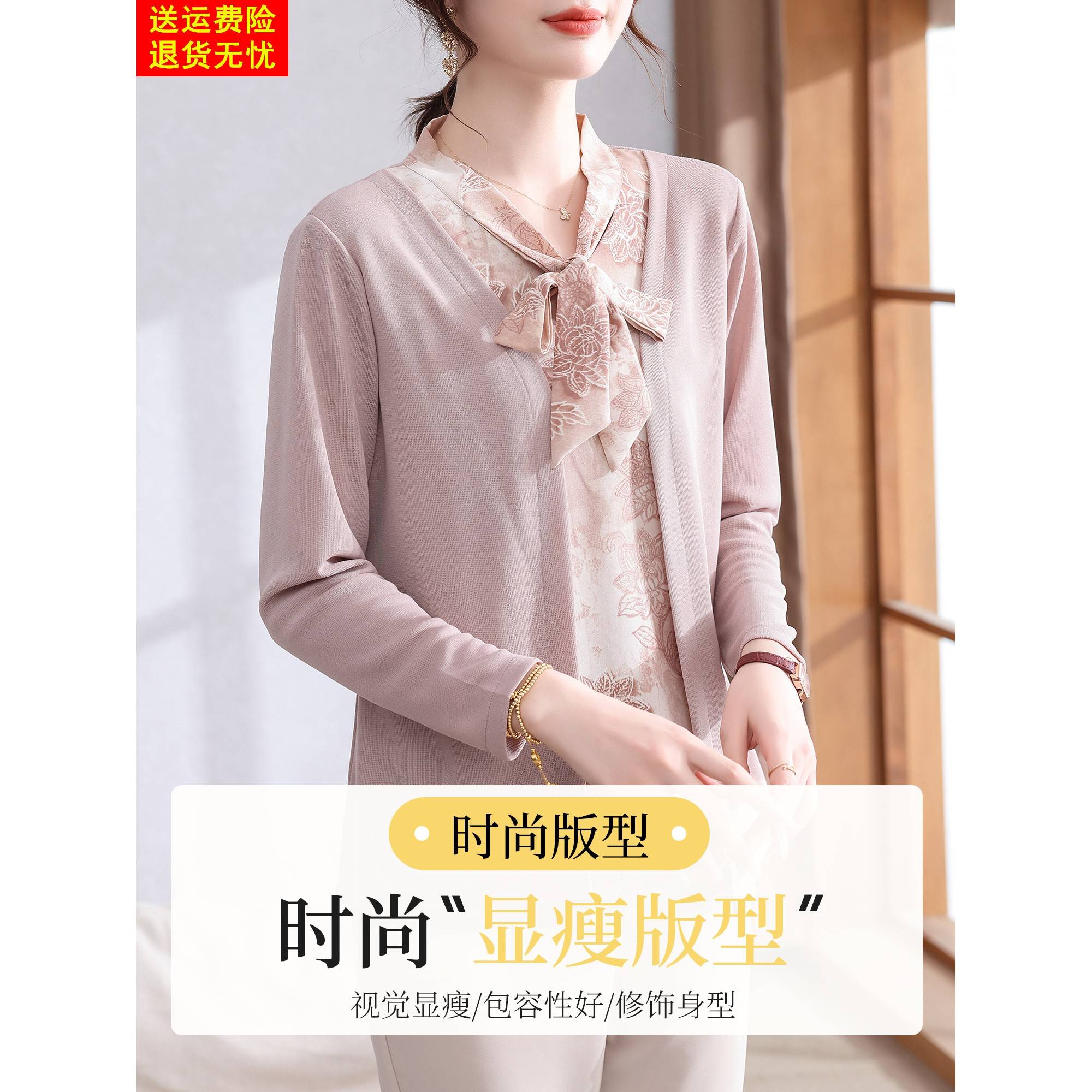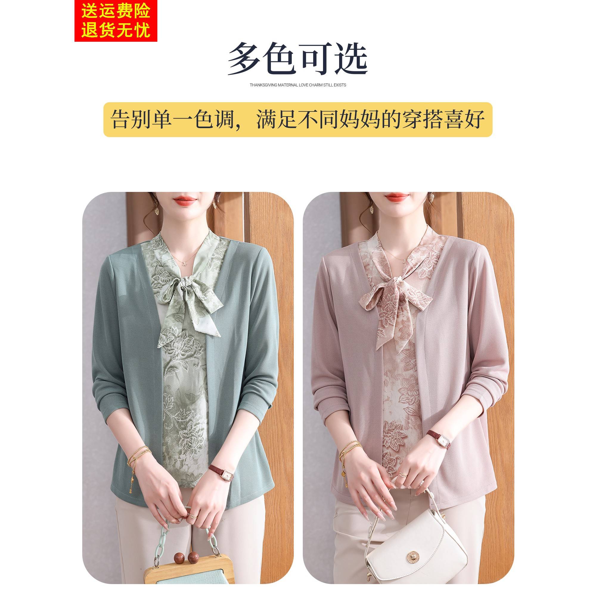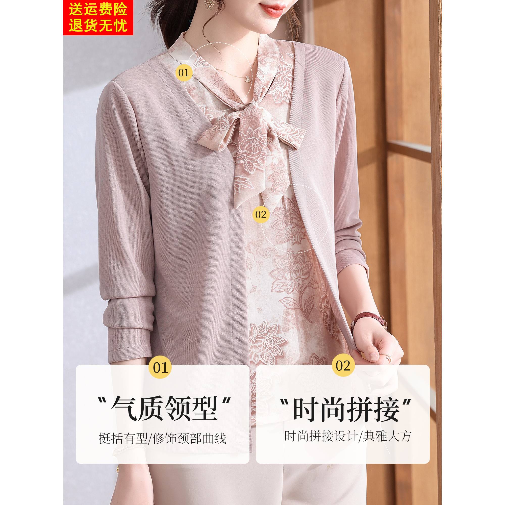 妈妈秋装打底衫假两件上衣服2025新款中老年女装春秋洋气T恤小衫