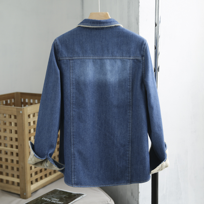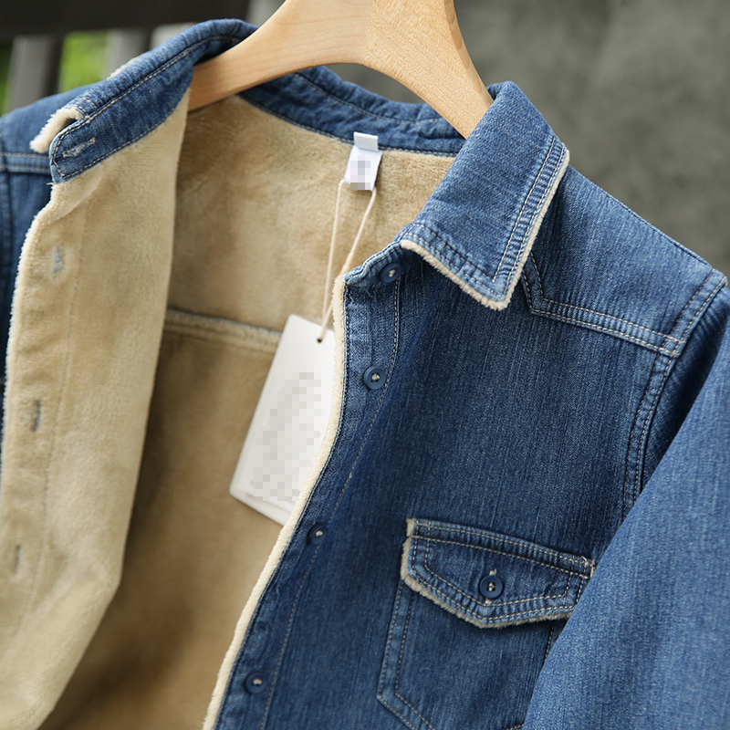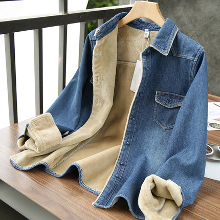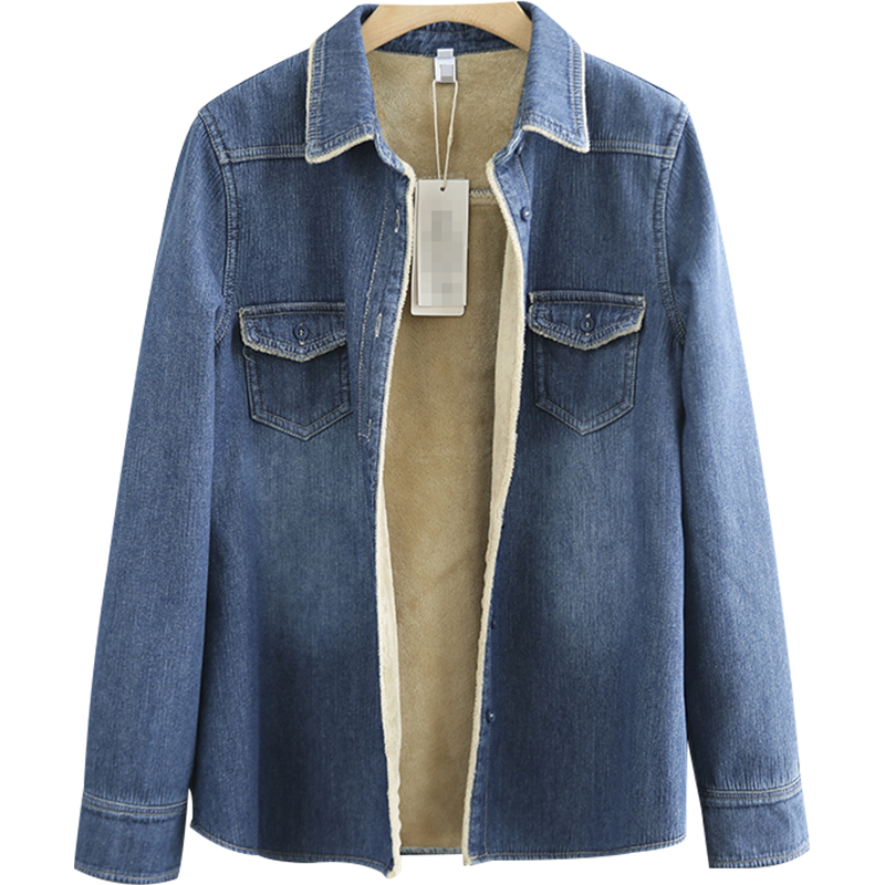 韩国牛仔衬衫加绒加厚衬衣女秋冬叠穿2023年新款保暖宽松上衣外套