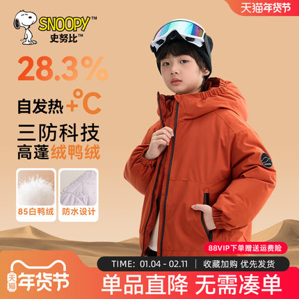 史努比儿童羽绒服2026新款防寒服男大童冬季上衣男童保暖连帽外套