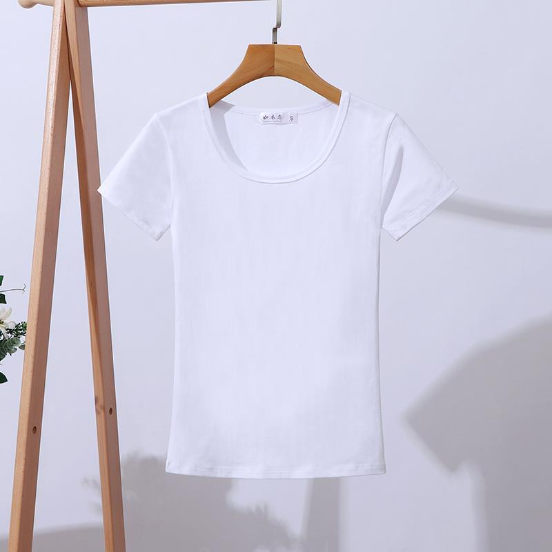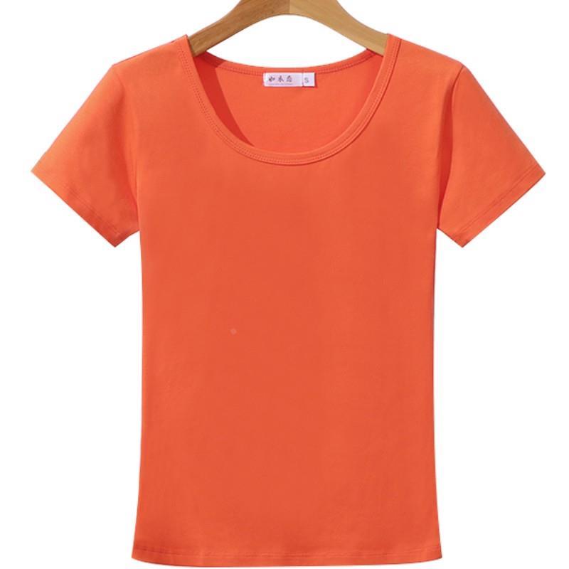 浅黄色短袖t恤女短款圆领修身简约纯色身体桖上衣纯棉打底衫舒适