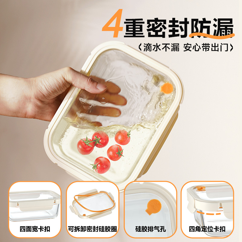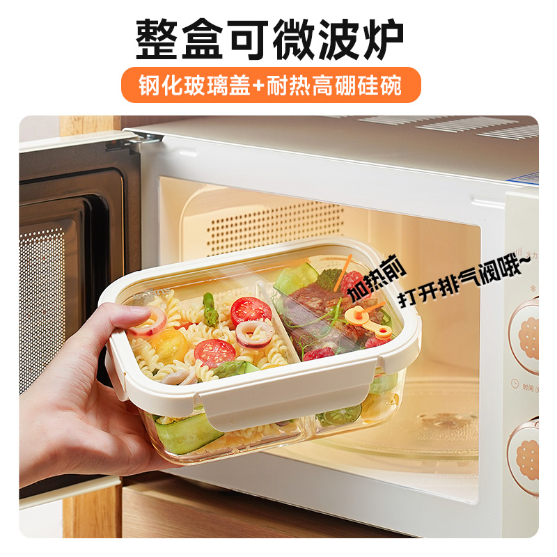 苏泊尔玻璃饭盒上班族微波炉加热专用分隔高硼硅食品密封保鲜盒碗