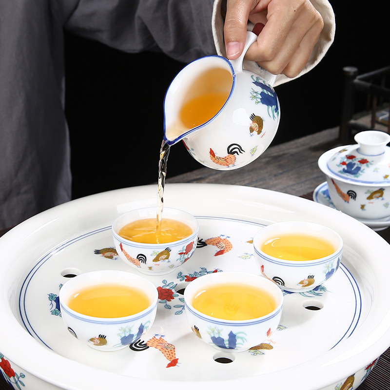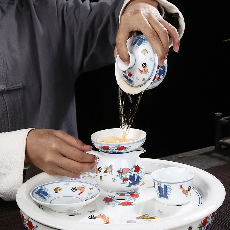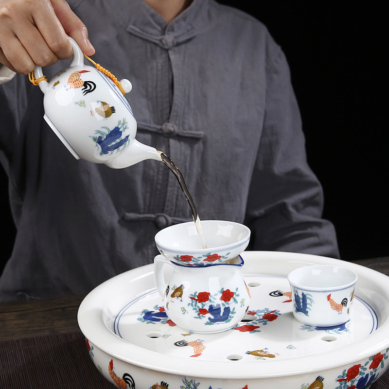 中式家用鸡缸杯功夫陶瓷茶具套装仿古大明成化斗彩茶杯瓷茶盘茶壶