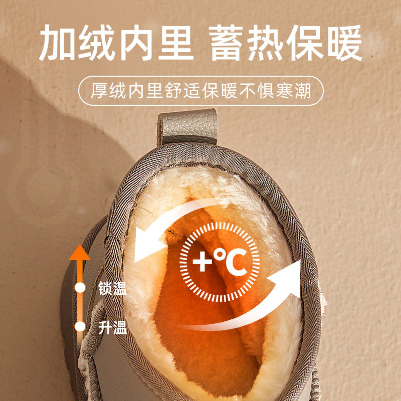 大东雪地靴女鞋2025冬季新款时尚平底厚底圆头加绒黑色舒适保暖靴