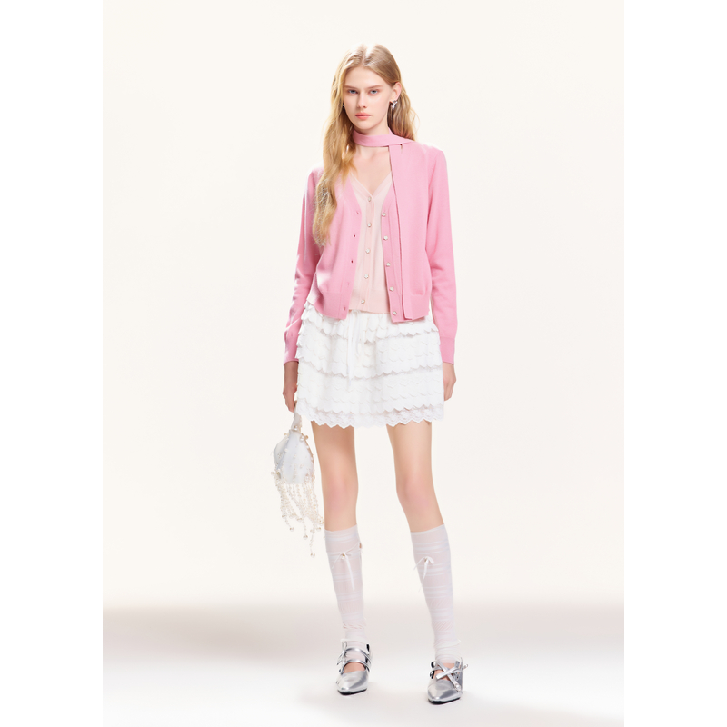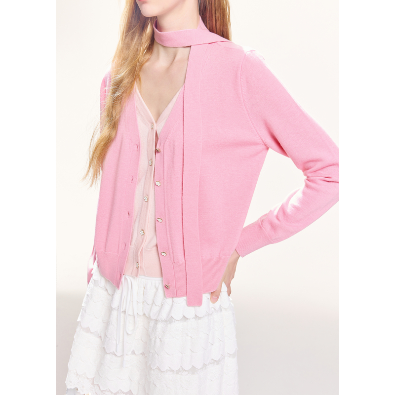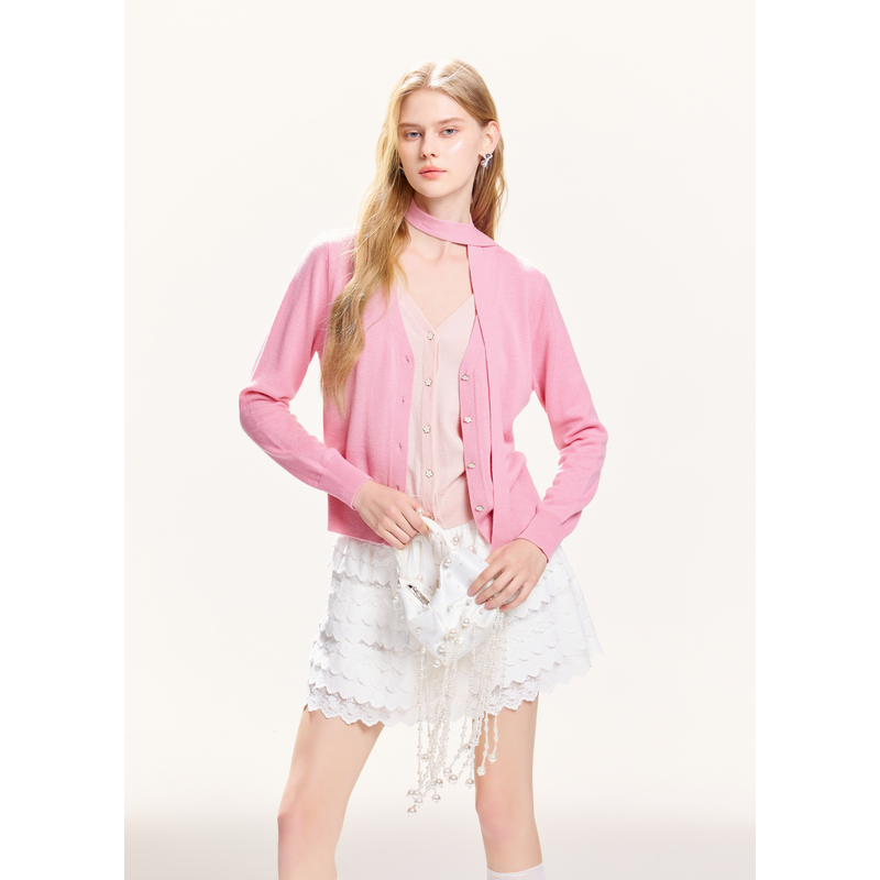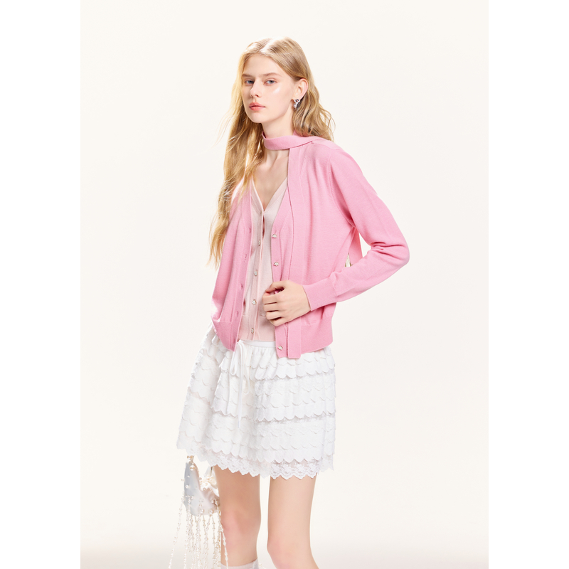 可可尼cocoon纯棉V领针织衫女2025秋季新款羊毛衫假两件开衫毛衣
