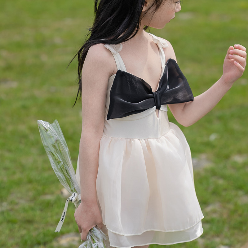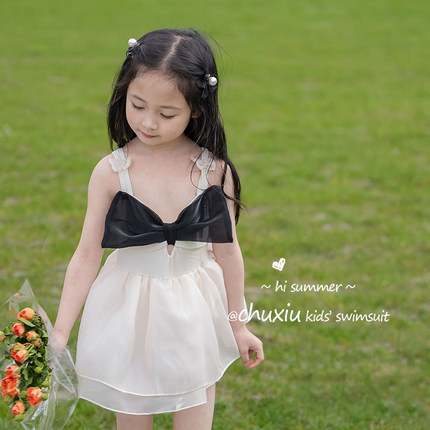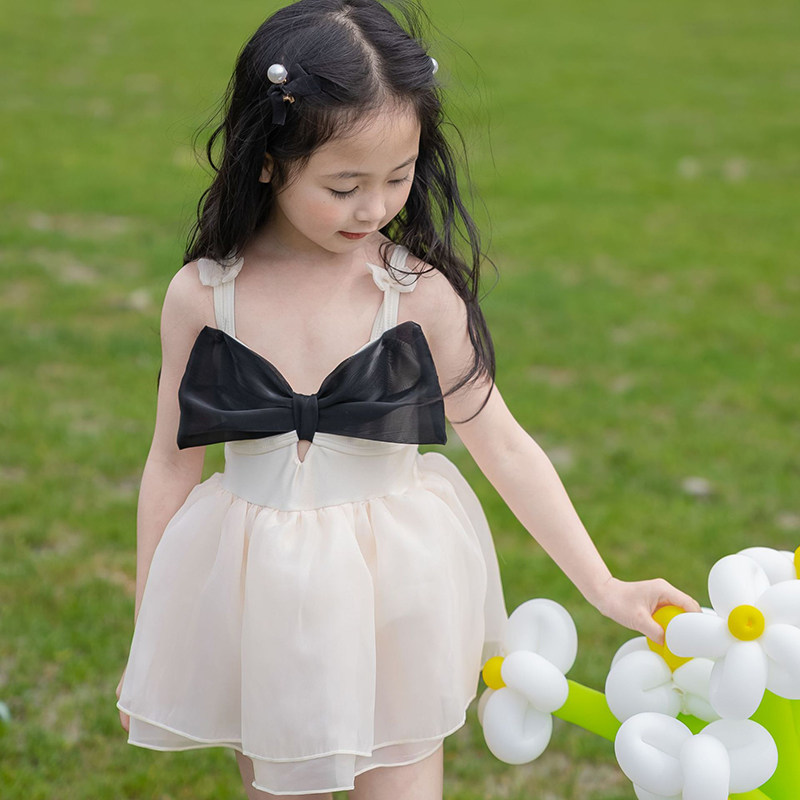 2023女童泳衣ins儿童连体吊带可爱蝴蝶结纱裙公主游泳衣网红泳衣