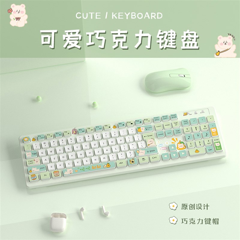 可爱卡通女生键盘无线 线有线 线电脑台式办公笔记本外部装置静音