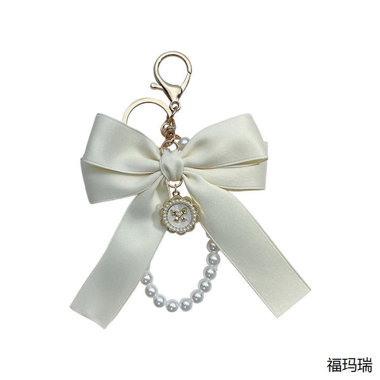创意蝴蝶结珍珠链钥匙扣女性时尚包包挂件汽车钥匙链个性飘带领结