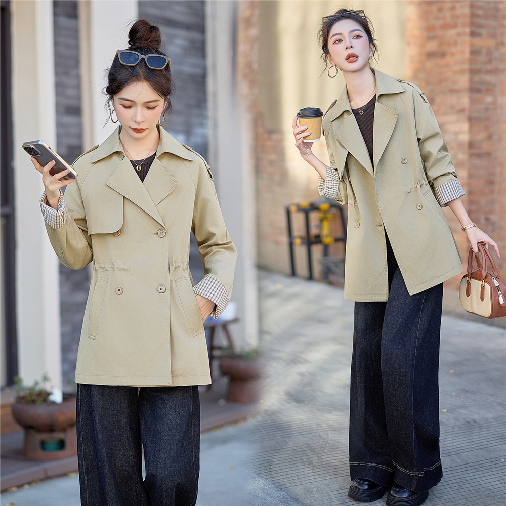 双排中长款风衣2025秋季新款休闲时尚通勤小个子收腰外套女装上新