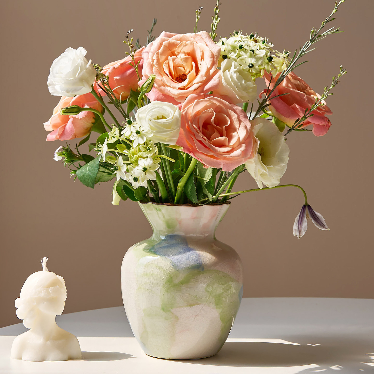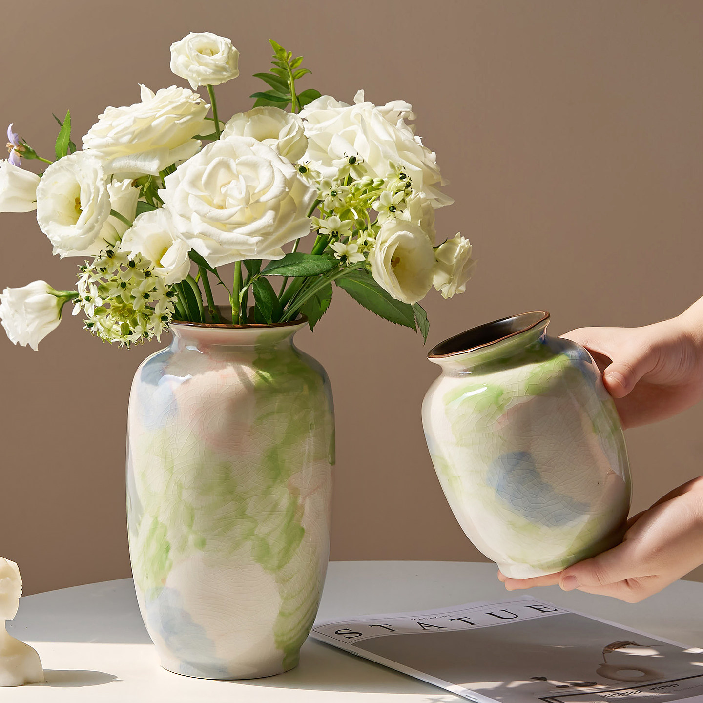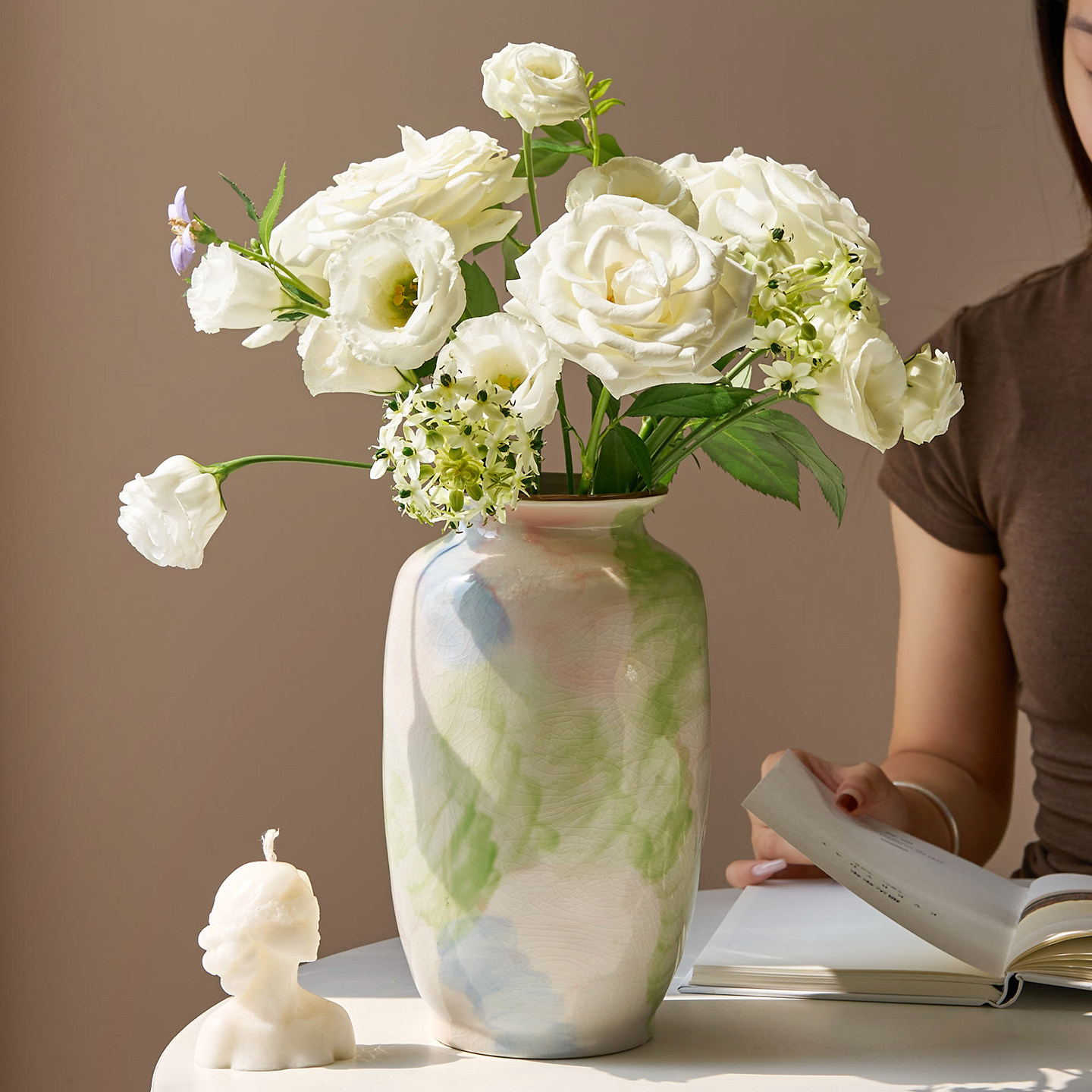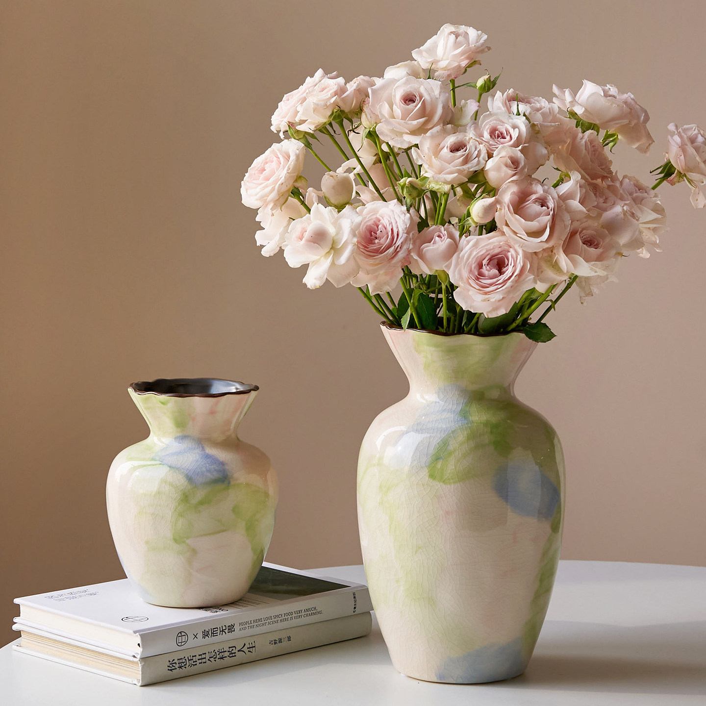 法式油画风色彩艺术陶瓷花瓶简约现代水培插花鲜花客厅装饰品摆件