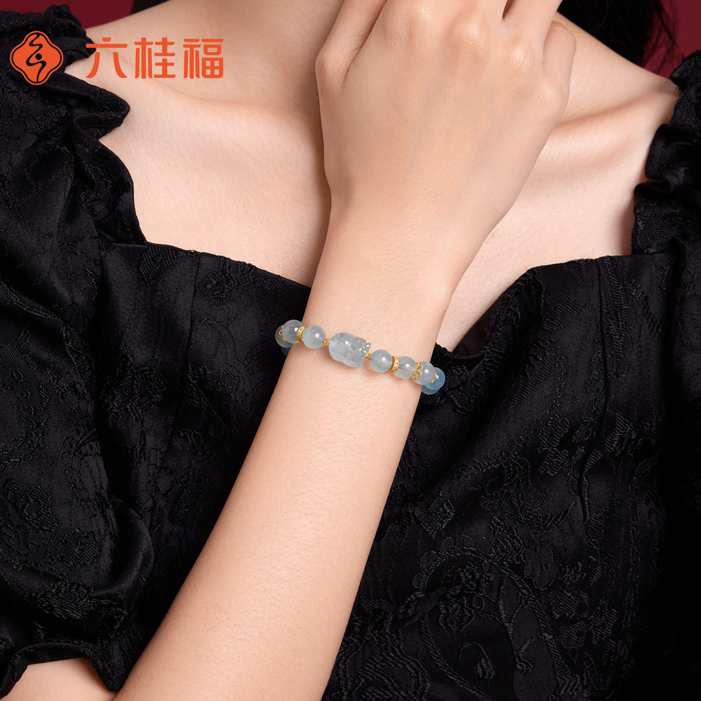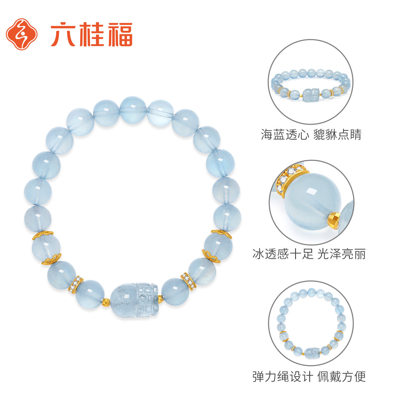 六桂福蓝海宝石手链时尚百搭