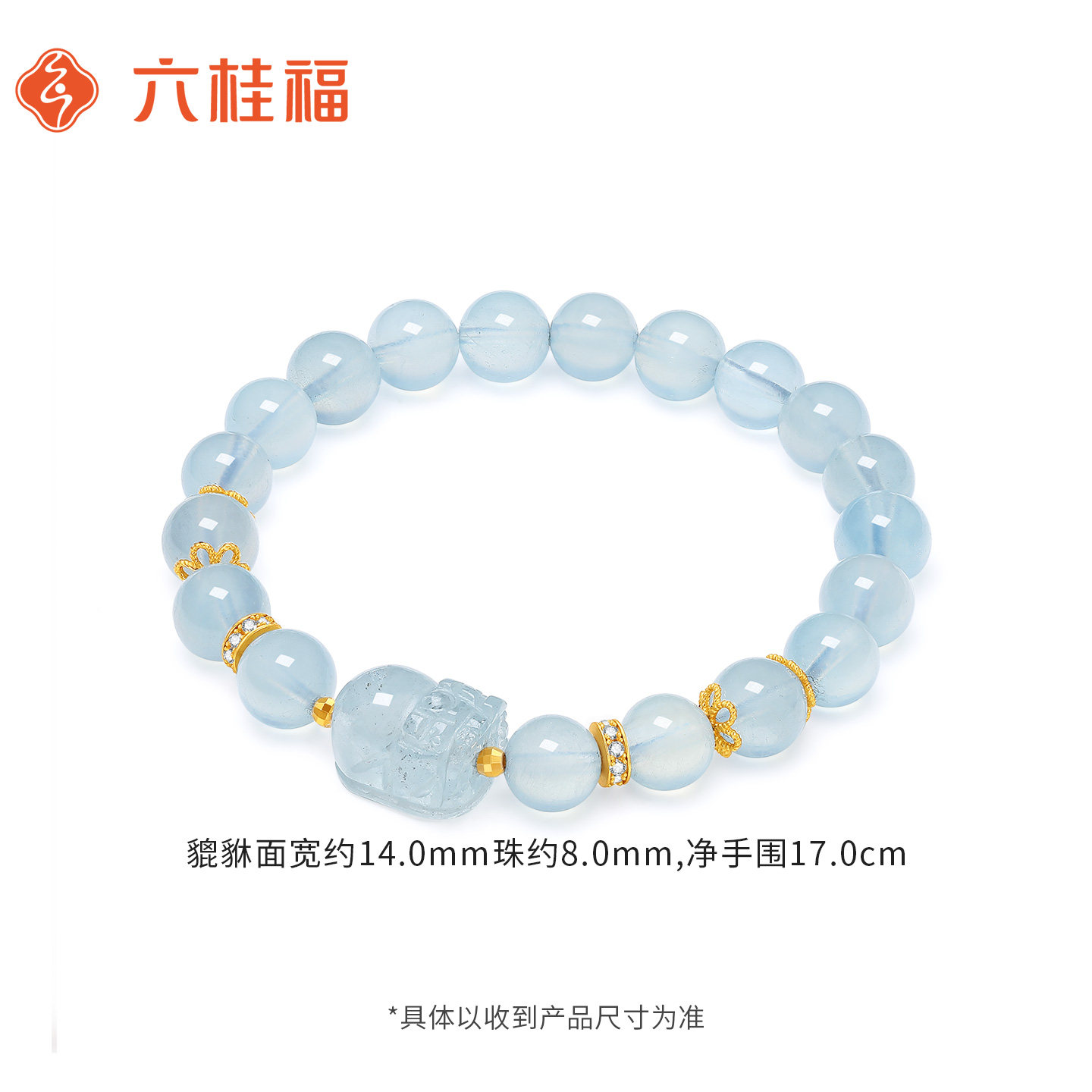 六桂福珠宝蓝海宝石手串珊瑚海貔貅手链S925银镶嵌送女友新年礼物