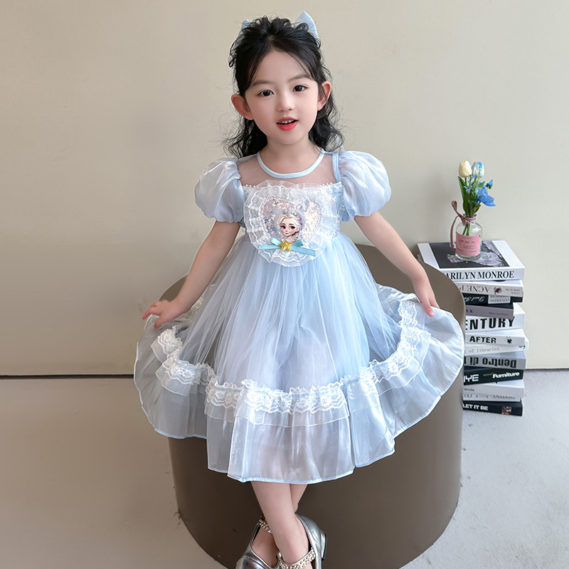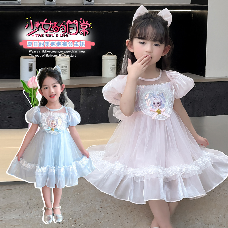 女童爱莎公主裙2025新款宝宝小女孩生日裙子洋气儿童连衣裙夏