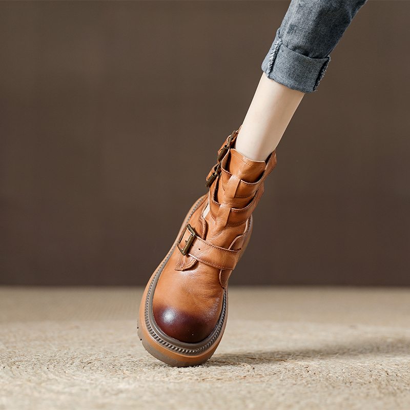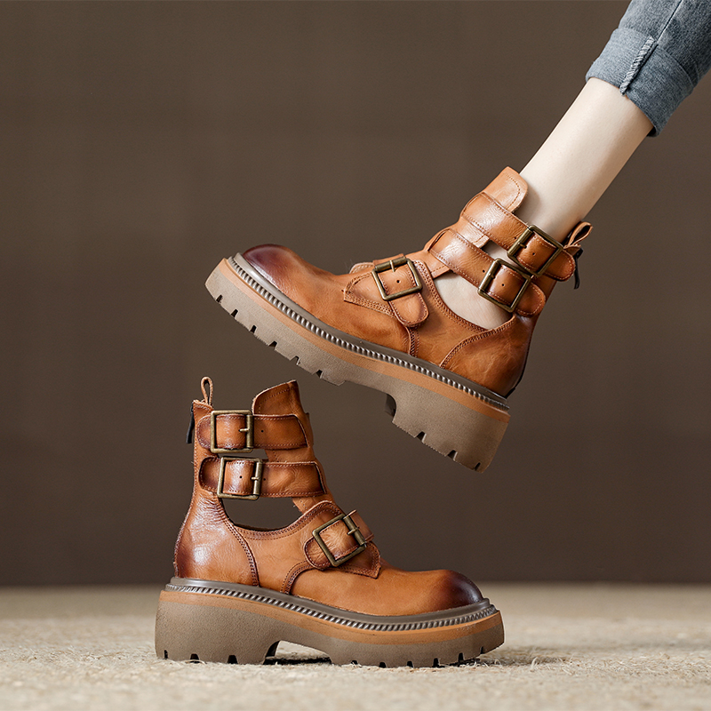 欧货真皮厚底镂空女款美拉德色马丁靴2025年夏季新款女鞋牛皮凉靴