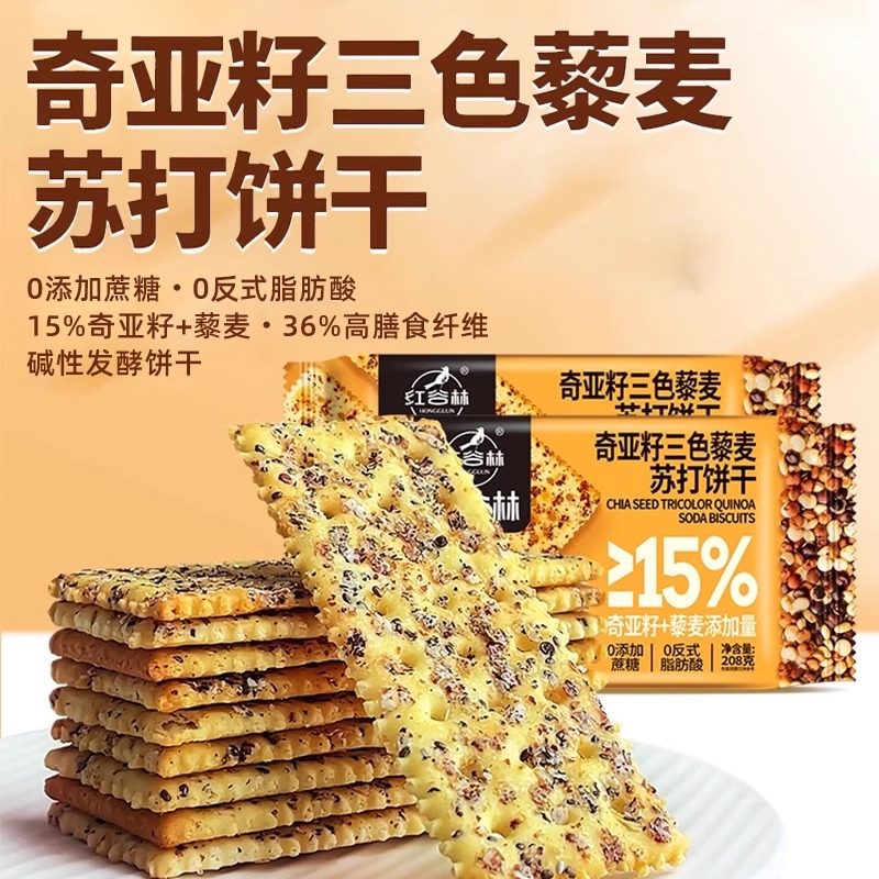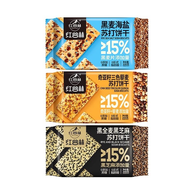 红谷林黑麦海盐苏打饼干奇亚籽三色藜麦咸味年货节无蔗糖小吃零食