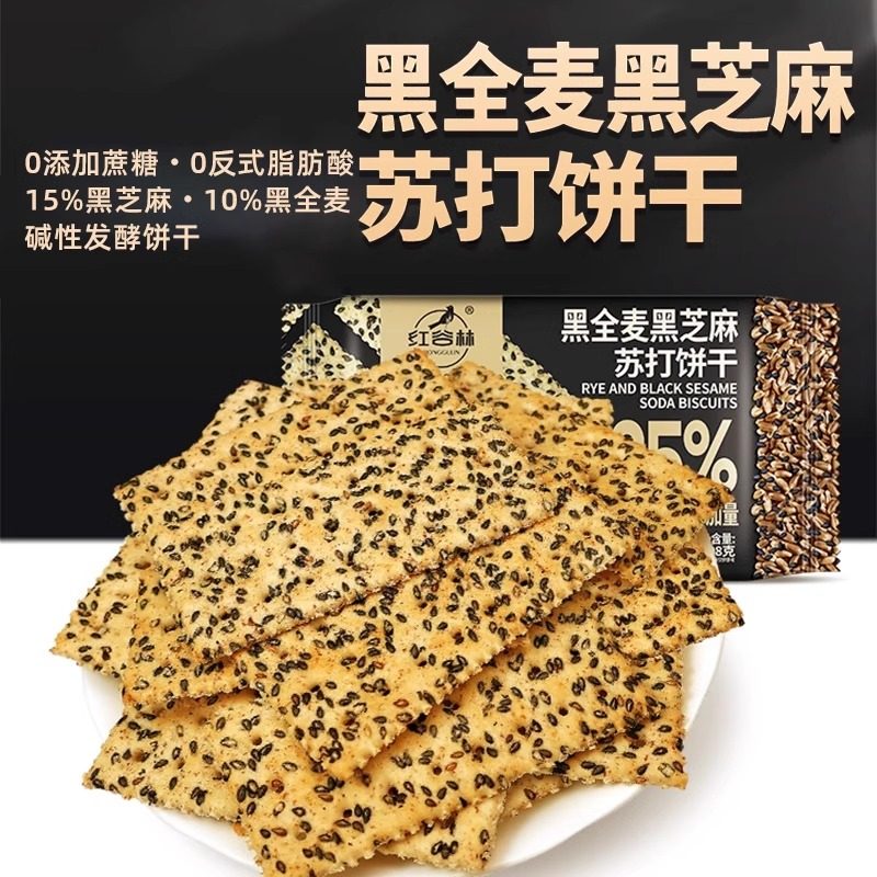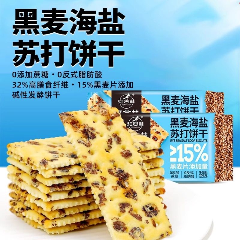 红谷林黑麦海盐苏打饼干奇亚籽
