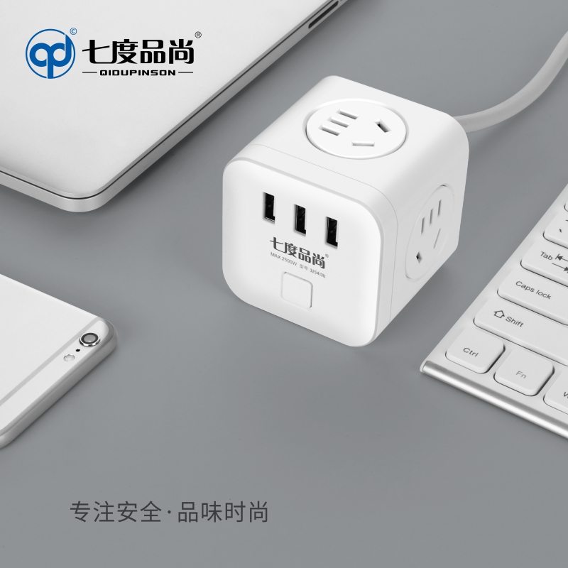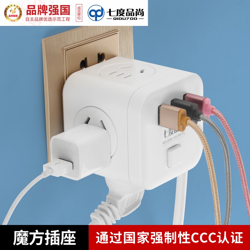 七度品尚魔方智能USB插排插座转换器多用功能创意电源插拖接线板