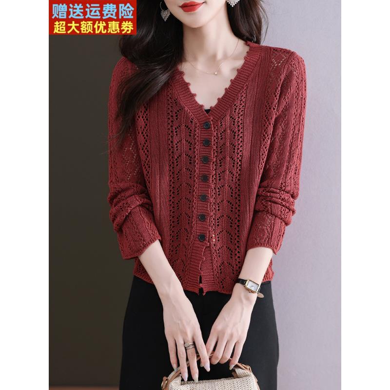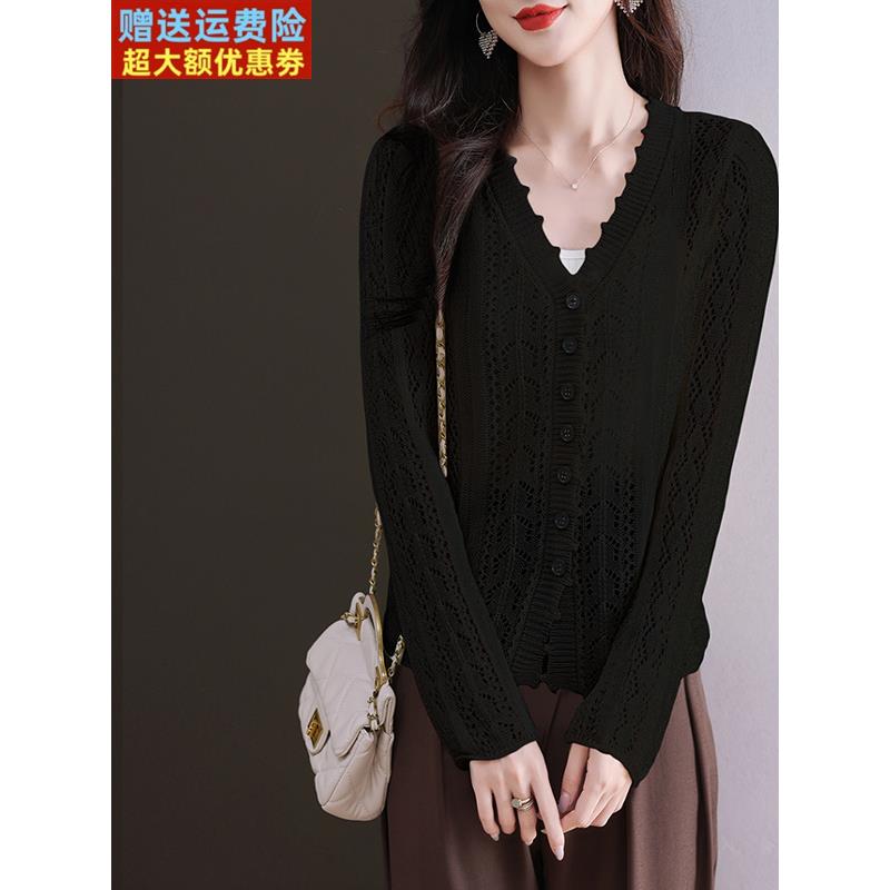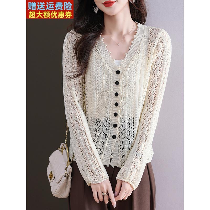 桑蚕丝镂空针织衫女开衫短款小披肩外套防晒空调衫宽松小个子夏季