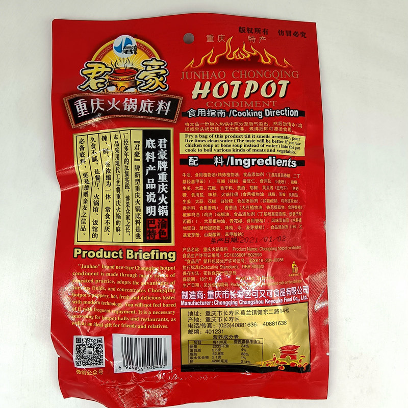 重庆特产君豪火锅底料400g正宗牛油麻辣红油香锅串串香冒菜家商用