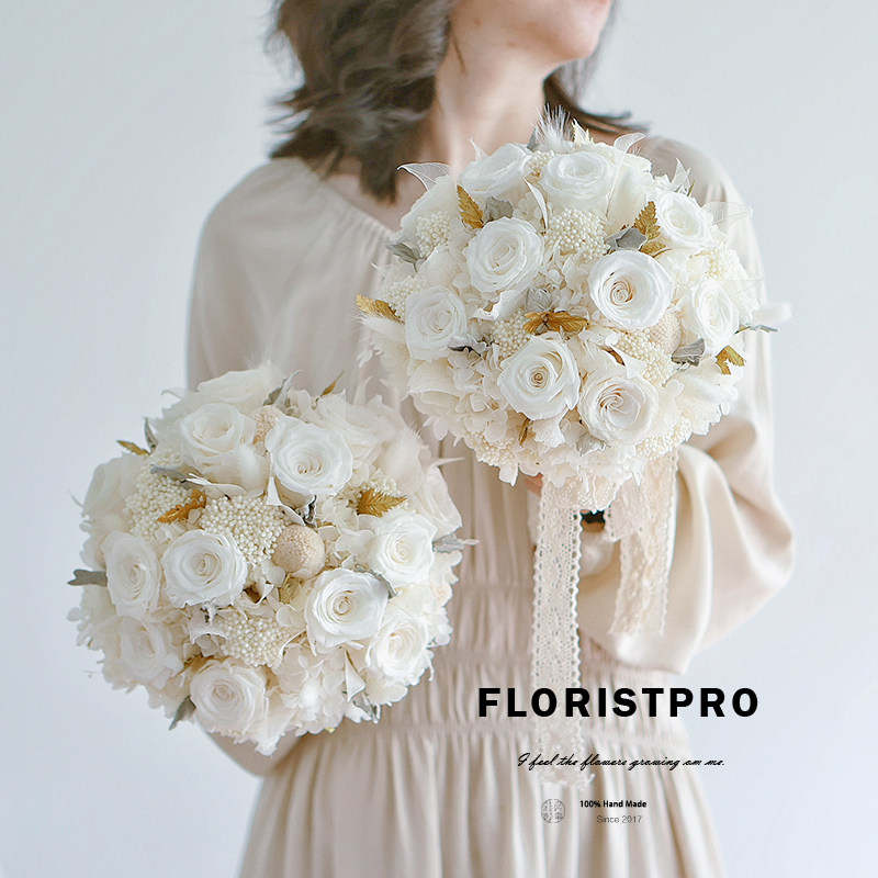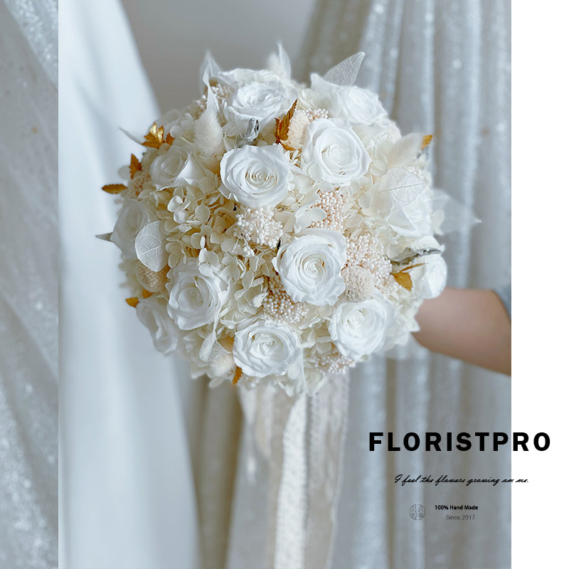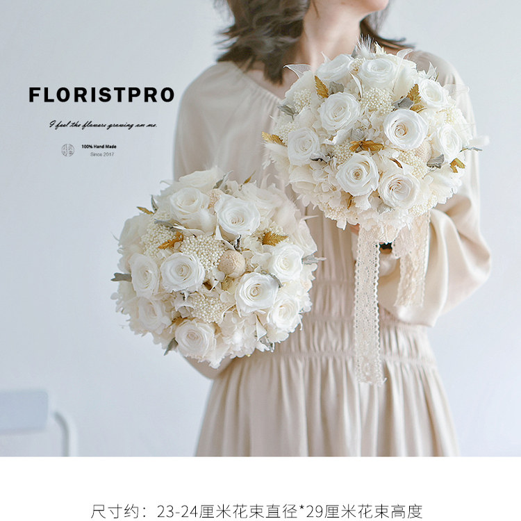 永生花白玫瑰新娘婚礼领证手捧花保鲜花室内装饰摆件情人节送花