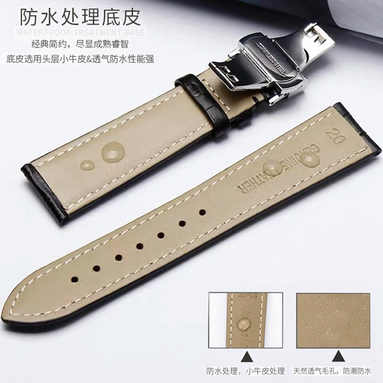 适配罗西尼真皮手表带适配雅尊商务 航海家系列蝴蝶扣表链21mm