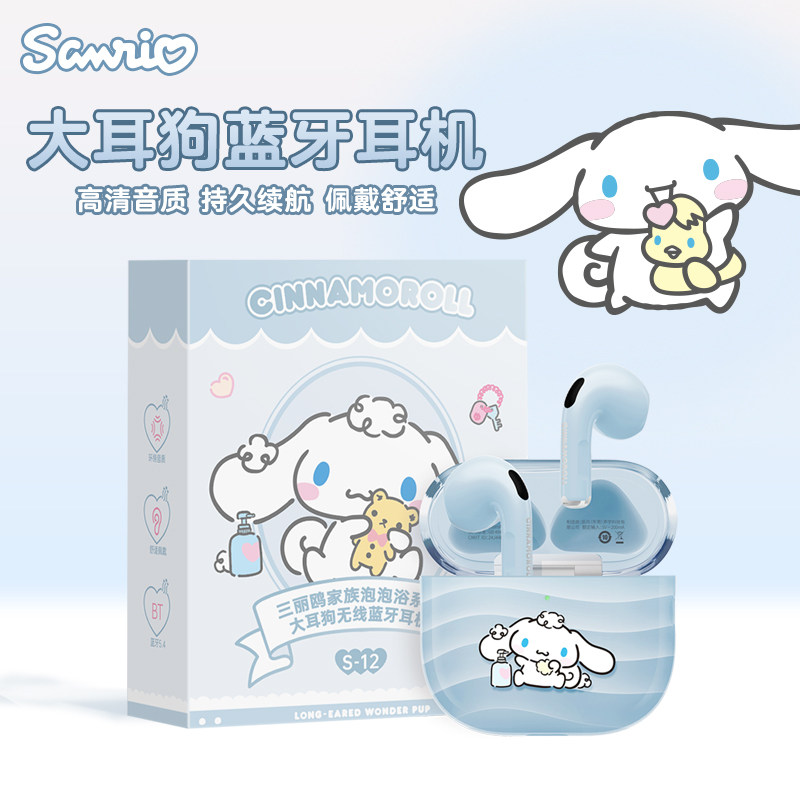 三丽鸥S-12蓝牙耳机大耳狗凯蒂猫情侣款无线降噪男女游戏半入耳式
