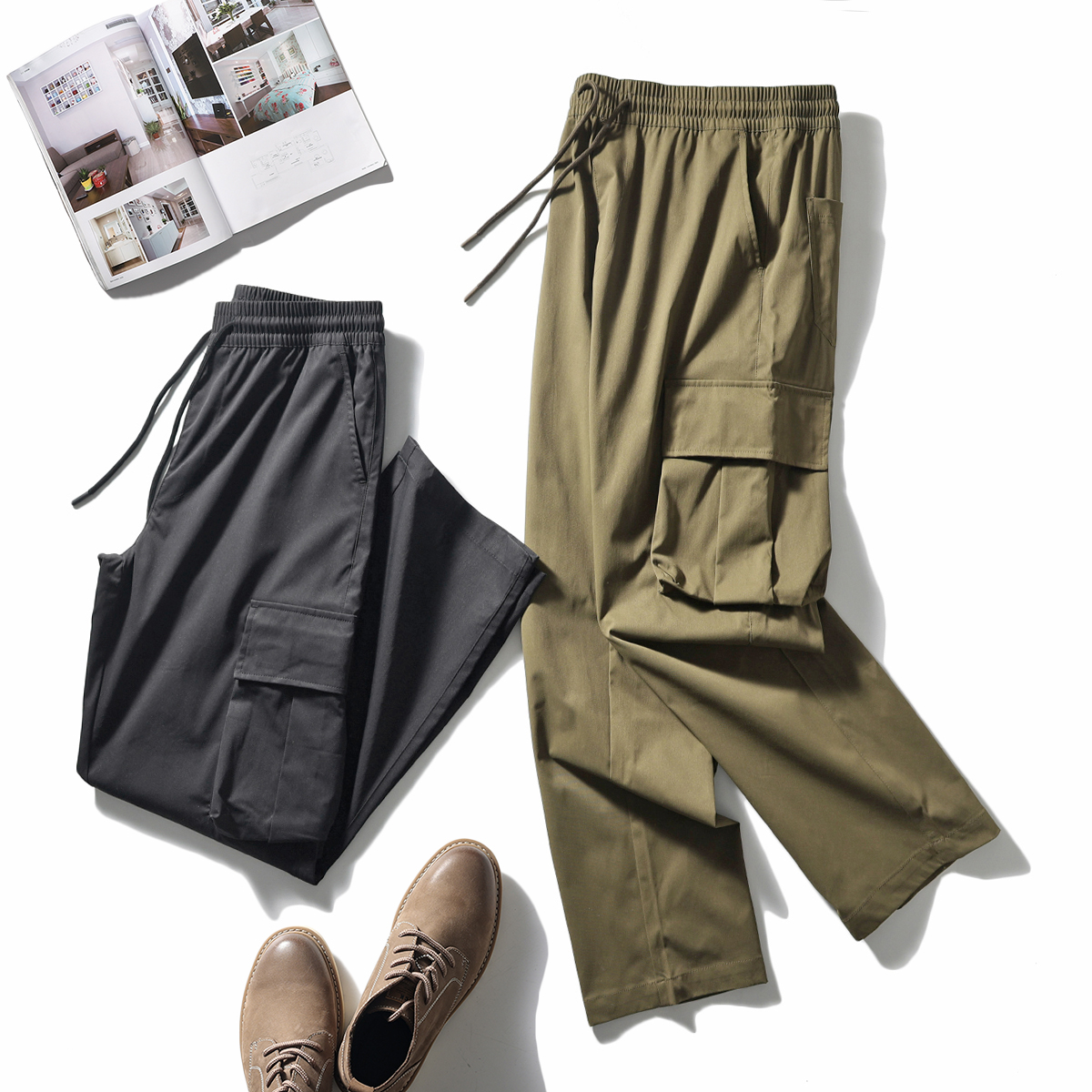 户外机能面料!透气防泼水春夏季男士松紧腰直筒工装裤多口袋长裤