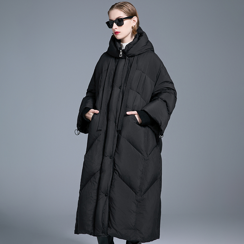 加厚被子款廓形大码羽绒服女2025冬季新款宽松显瘦长款白鸭绒外套