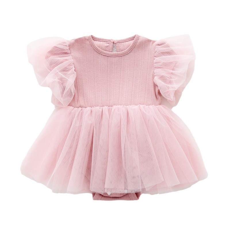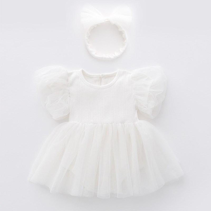 夏季短袖纱裙童装满月新生儿衣服女童公主裙子婴幼儿包屁柔软裙子