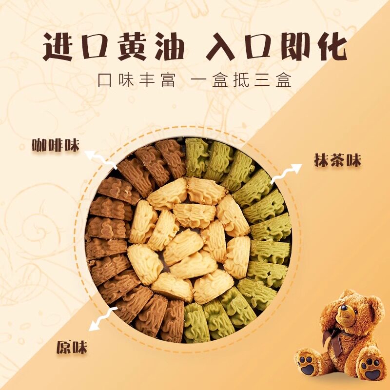 香港小熊曲奇饼干505g进口黄油抹茶混合口味糕点办公室零食送礼