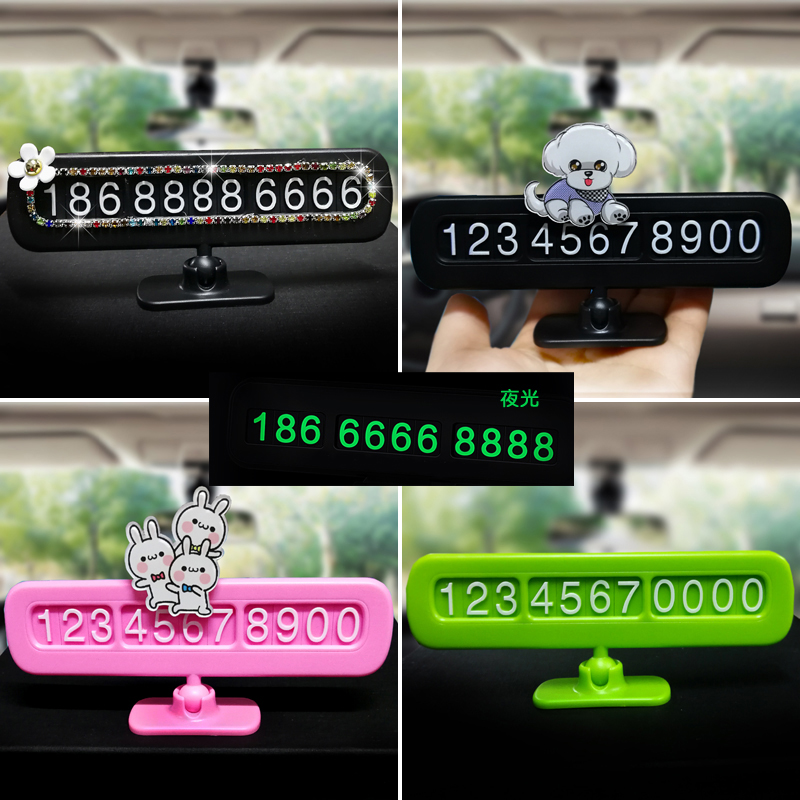 汽车摆件临时停车牌个性夜光车内饰品电话号码卡牌可隐藏停车卡贴