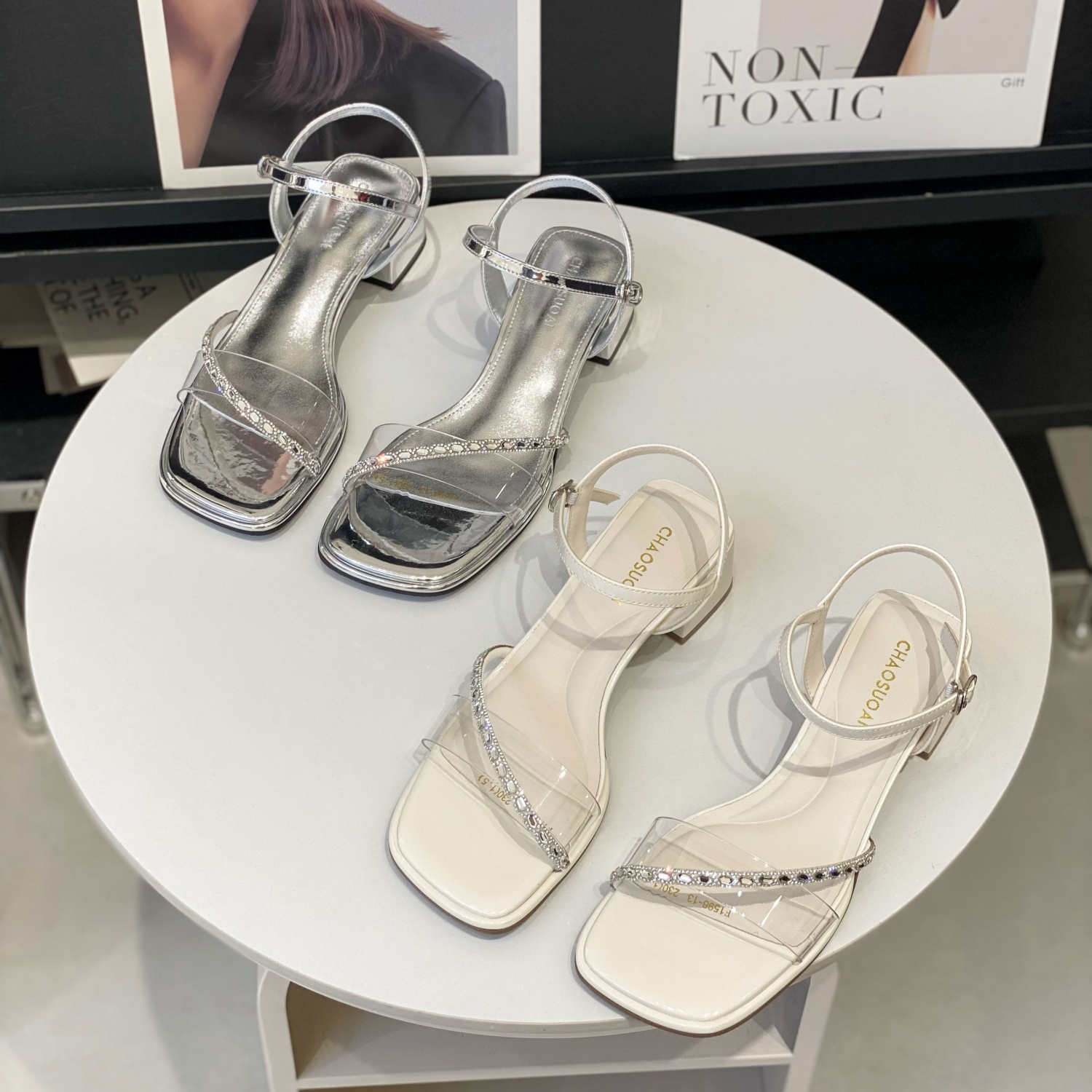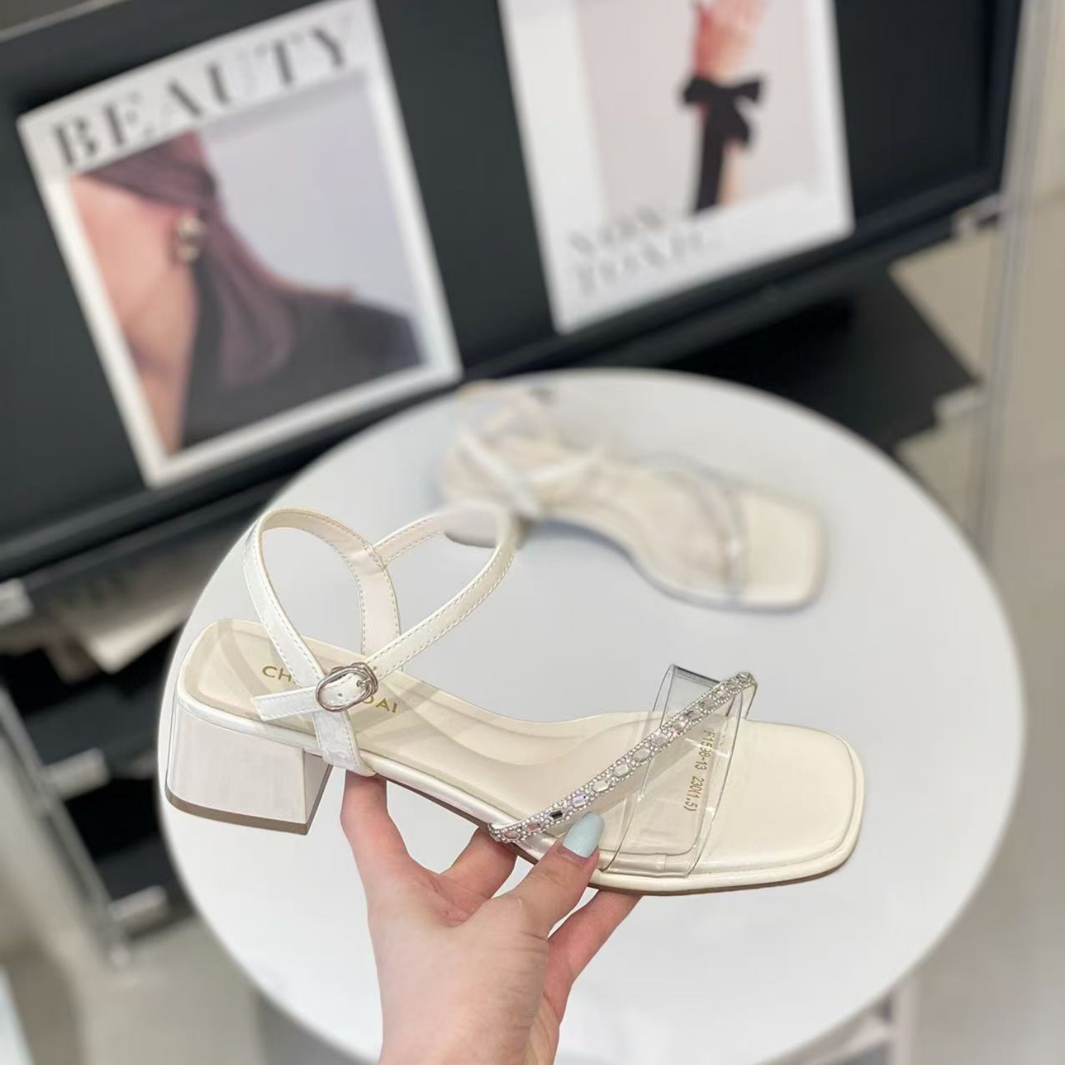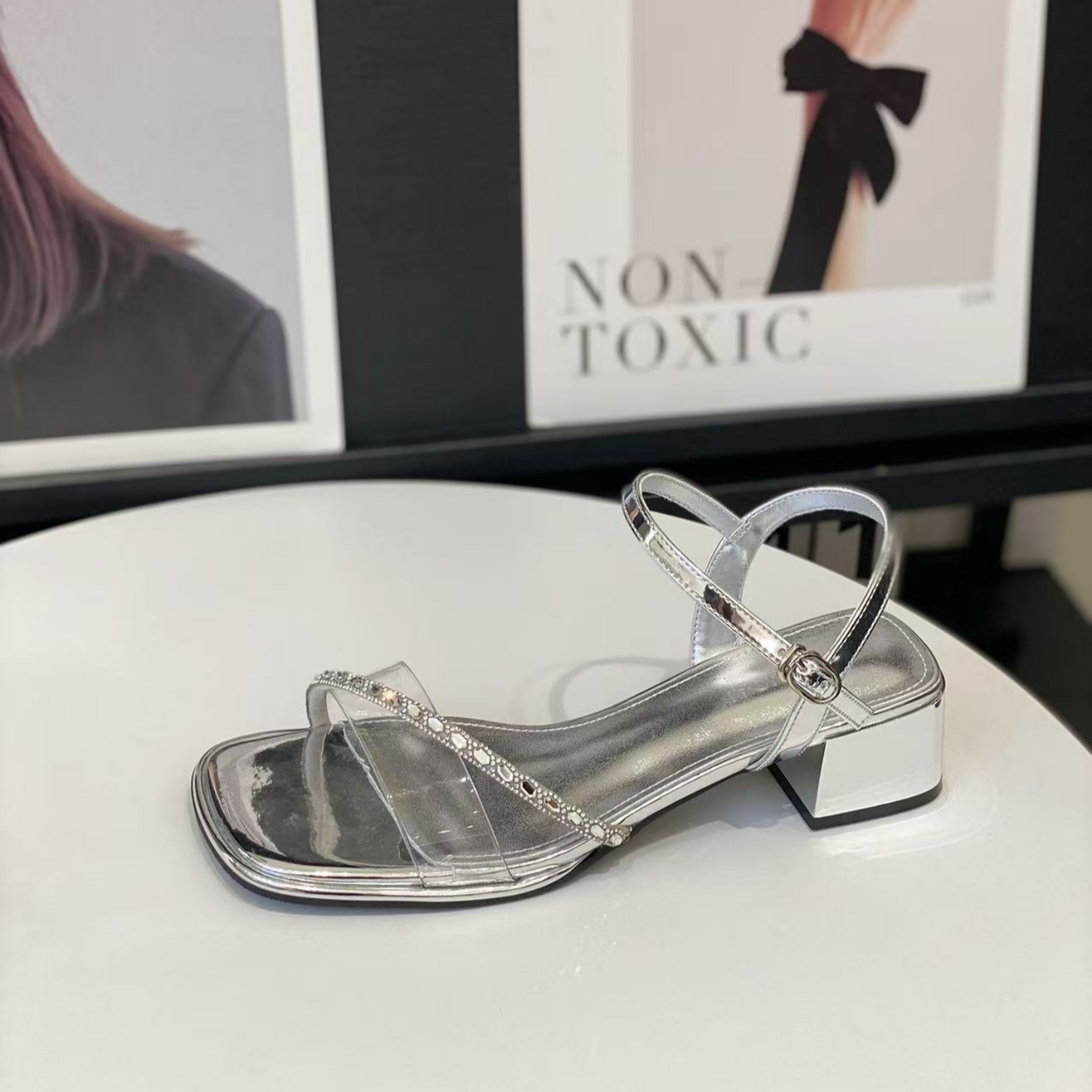 粗跟气质轻熟风配裙子一字带凉鞋
