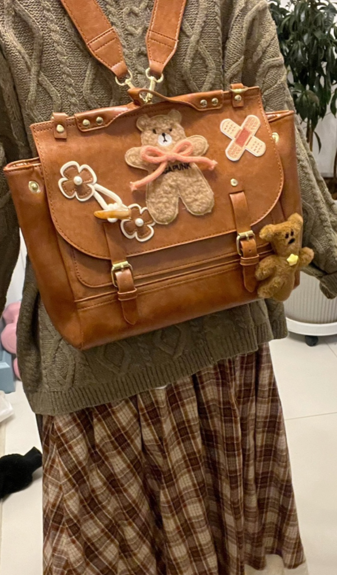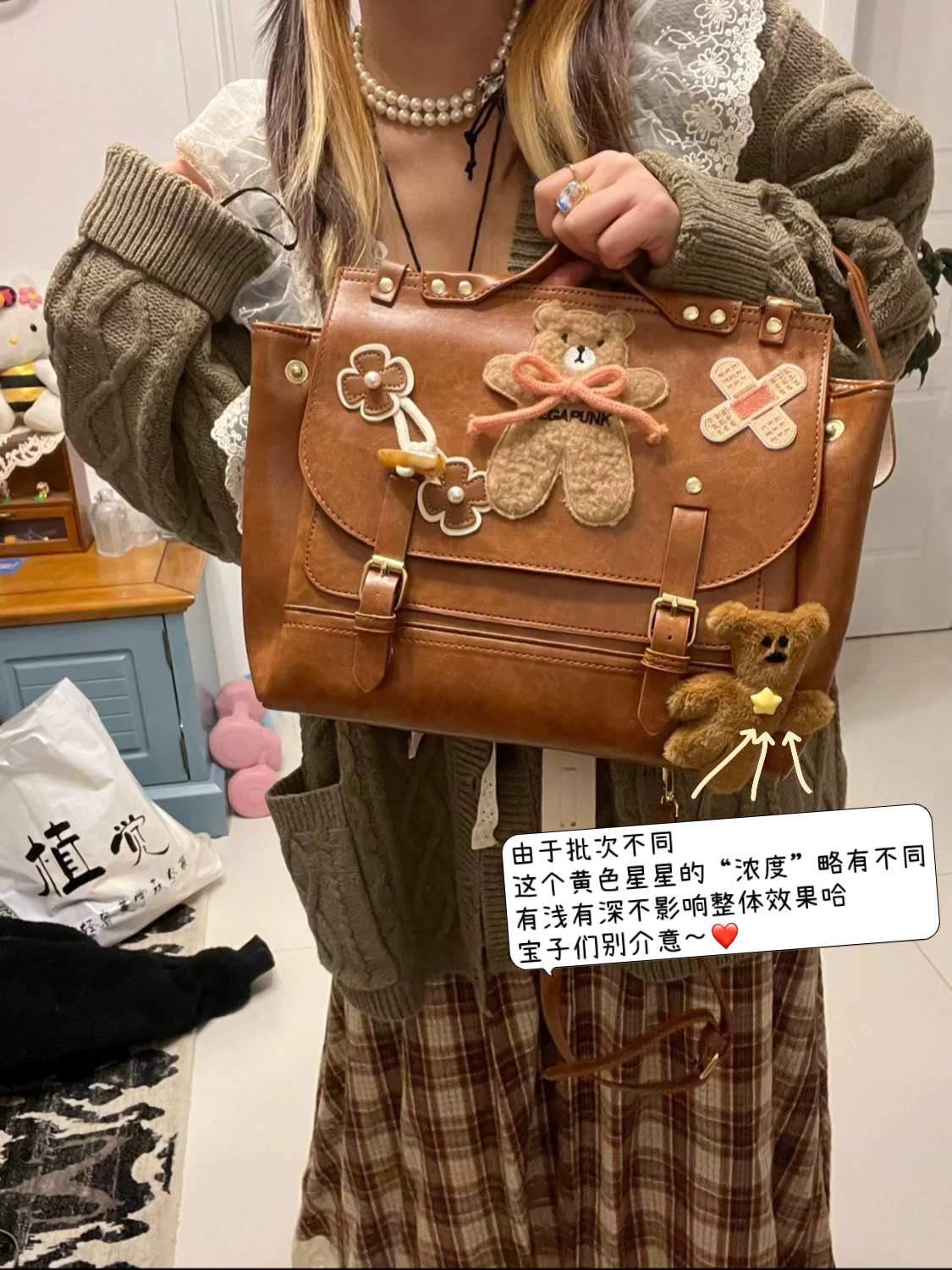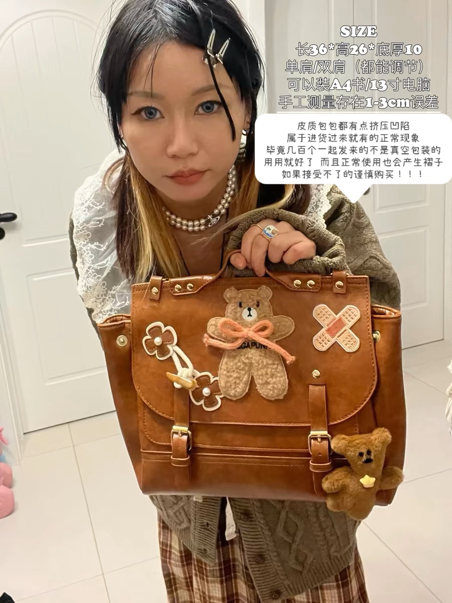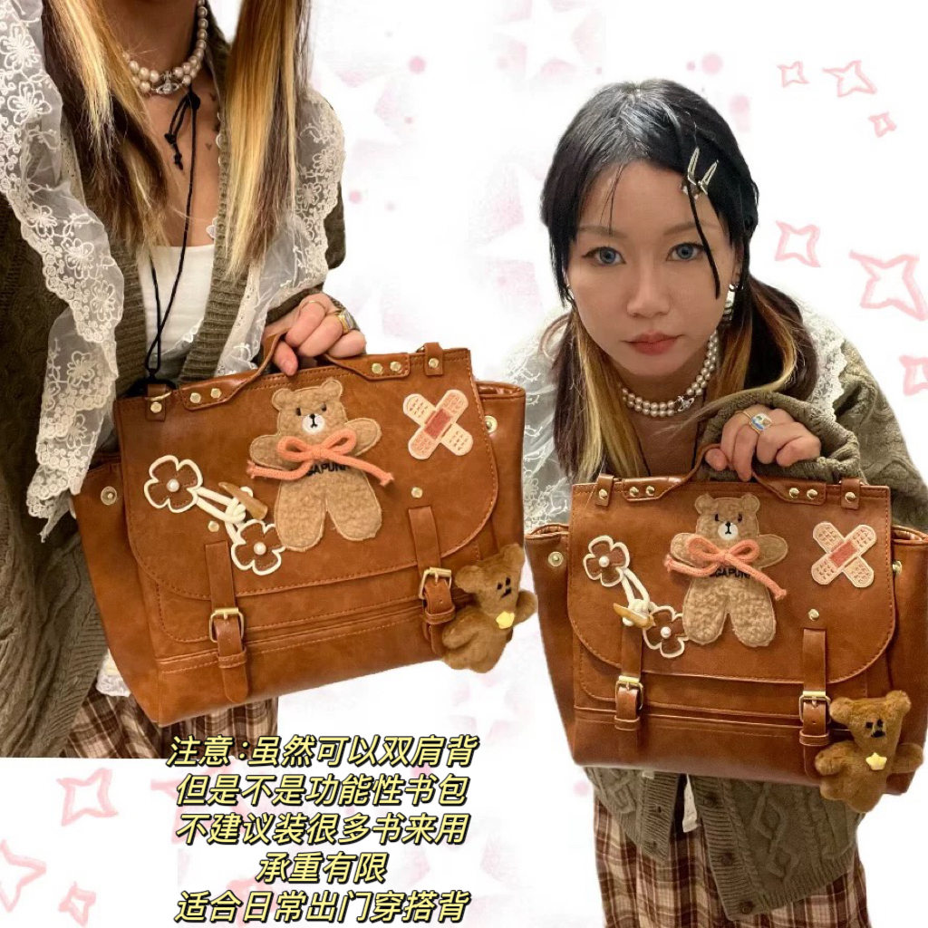 黑樱酱商店 复古感小熊创可贴牛角扣美拉德JK百搭斜挎双肩包包