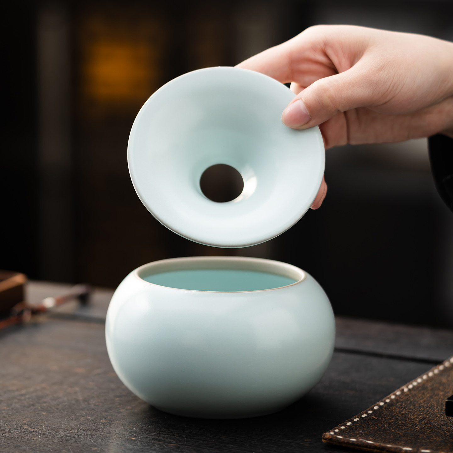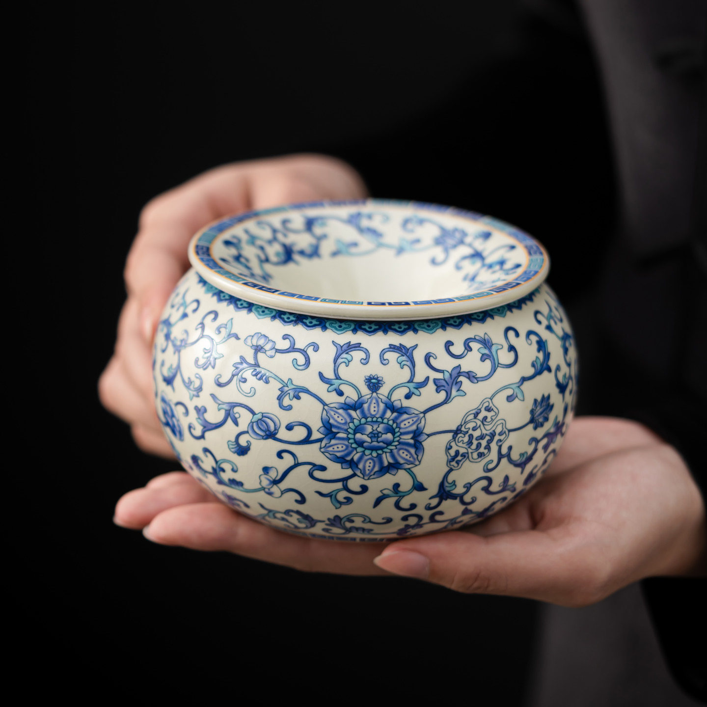 汝窑国风缠枝莲茶渣缸建水陶瓷水盂杯洗中式家用茶洗功夫茶具配件