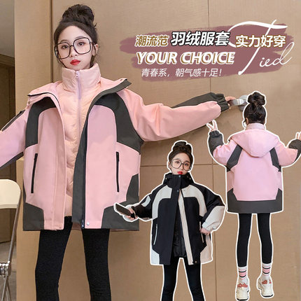 女童羽绒服内胆三防冲锋衣外套冬装儿童洋气休闲时尚韩版防风衣潮