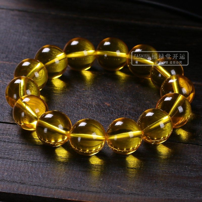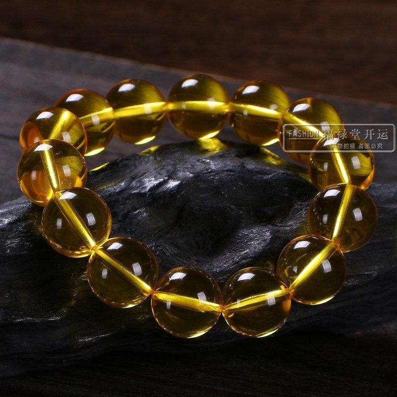 缅甸净水金珀手串蜜蜡招财金黄色琥珀手链单圈圆珠手串佛珠转运珠