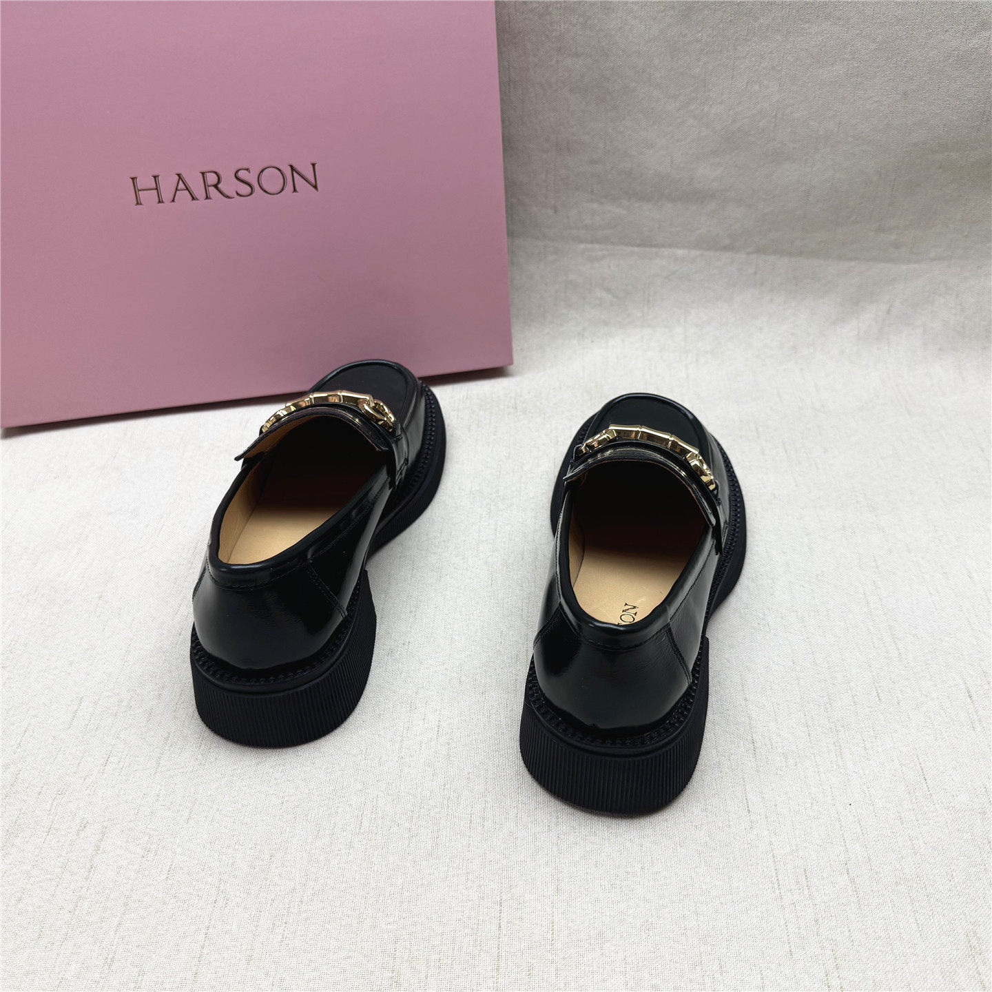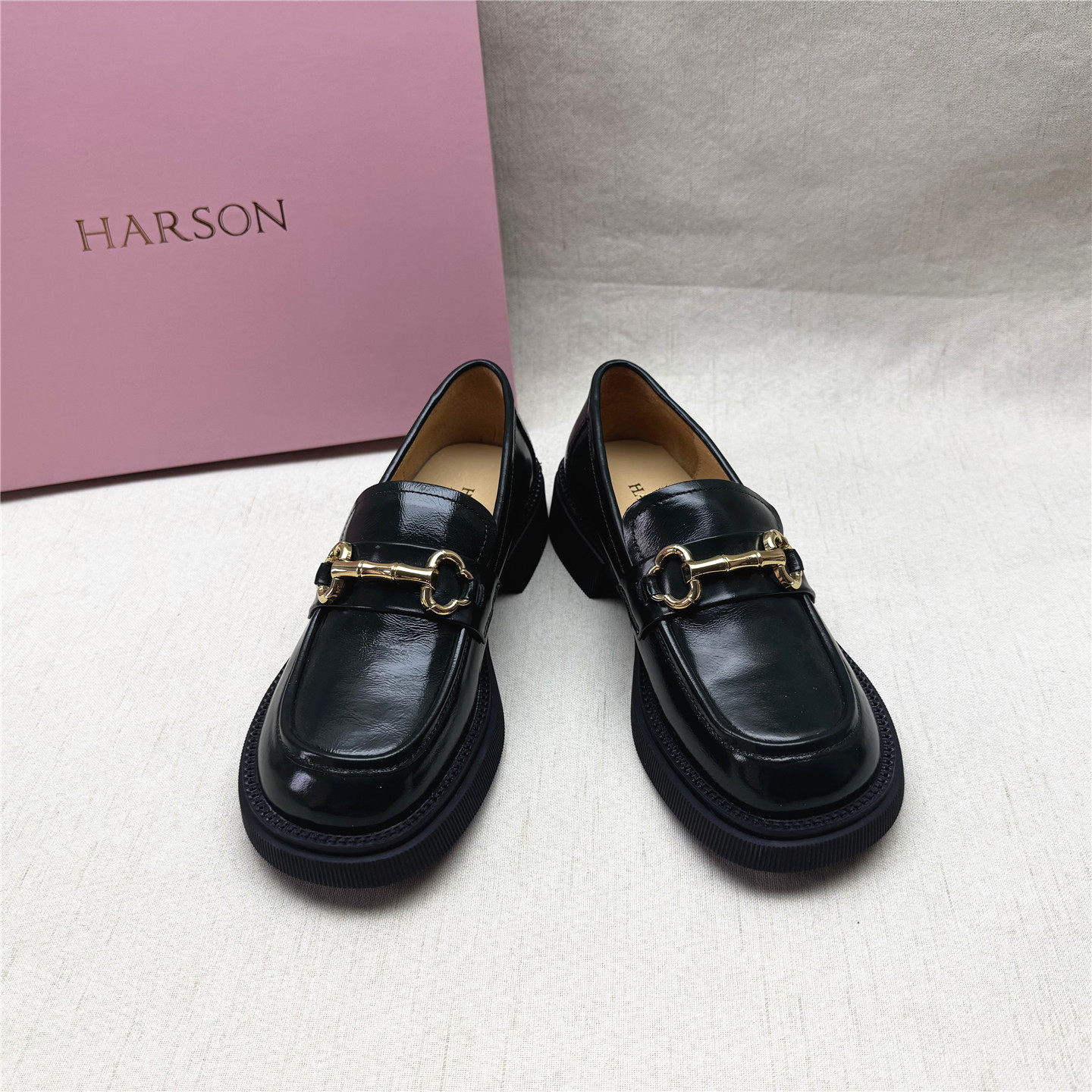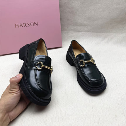 哈森品牌撤柜正品时尚厚底圆头乐福鞋女秋新款真皮浅口一脚蹬单鞋