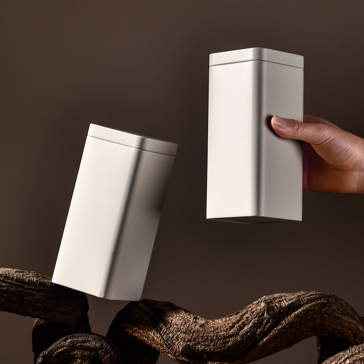 方形茶叶罐小铁罐红茶绿茶岩茶2两密封罐金属便携白色存茶罐子