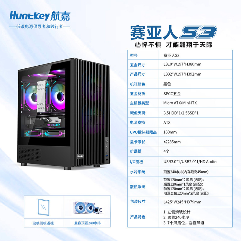 航嘉赛亚人S3机箱台式机电脑Matx风冷主机箱玻璃侧透支持240水冷