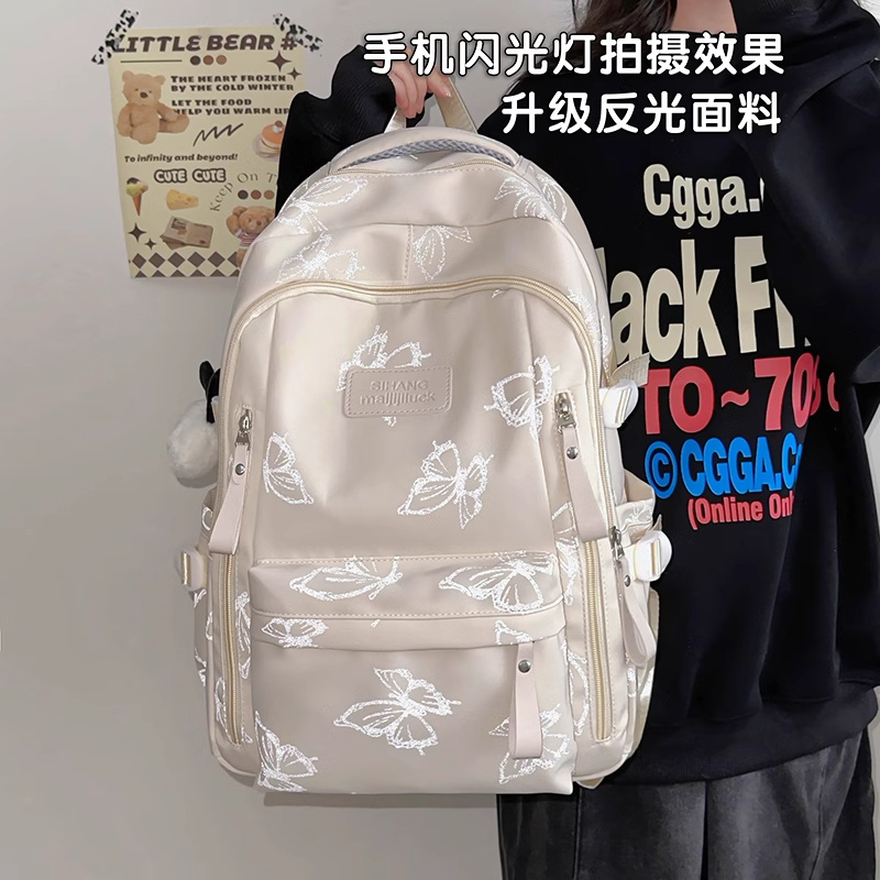 新款日本进口书包女生初中学生减负背包女大容量护脊蝴蝶双肩包
