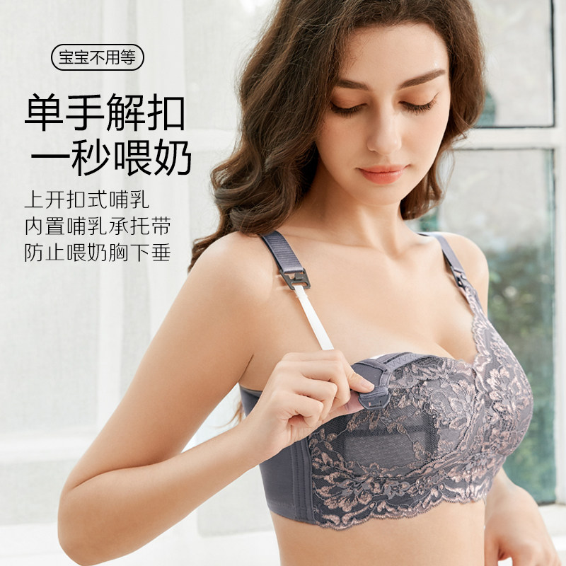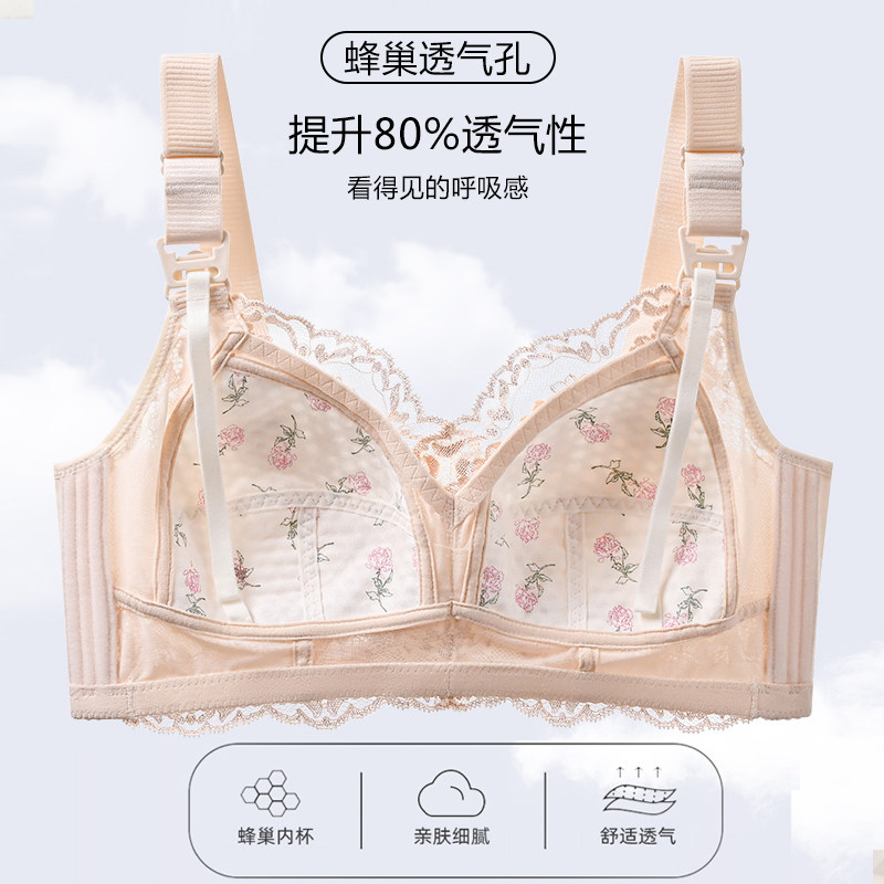调整型哺乳内衣大码收副乳防下垂大胸显小无钢圈薄款孕妇喂奶胸罩