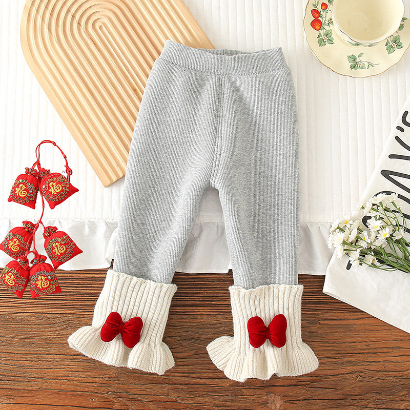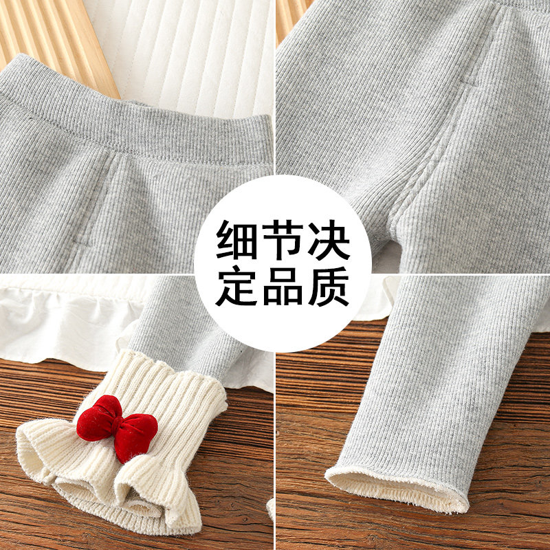 女童加绒加厚裤子秋冬宝宝白色无骨堆堆袜打底裤儿童冬季洋气保暖